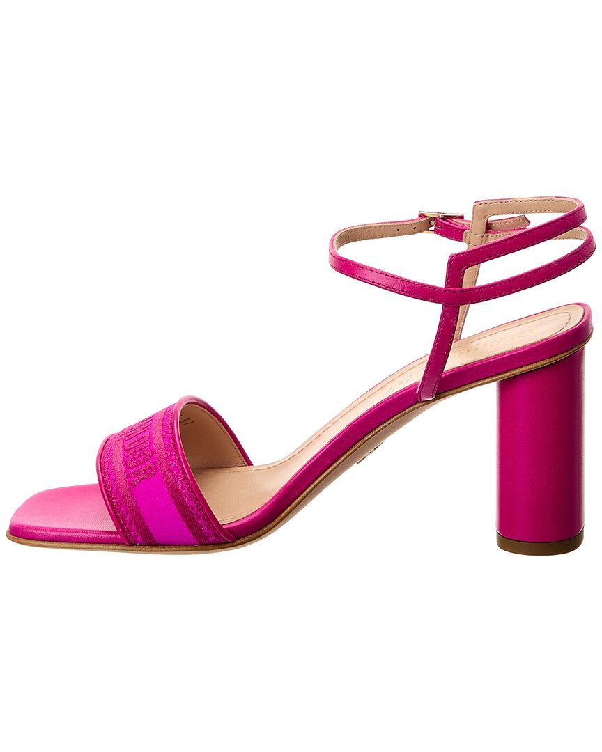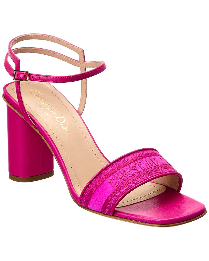 The Dior DWay Leather Sandal is the epitome of elegant and timeless French luxury. Made in Italy, this pink leather sandal features gold-tone hardware with logo embroidery for a touch of sophistication. The adjustable ankle strap with buckle closure ensures a secure fit, while the lightly padded leather insole provides all-day comfort. With a smooth leather sole and a 3-inch heel, these sandals are perfect for adding a luxurious touch to any outfit. Please note that size selections are European, so please reference the size chart for US conversions. All measurements are approximate and were taken from a size 37. Rest assured, our products are , sourced from trusted independent suppliers to . Elevate your look with the Dior DWay Leather Sandal today.