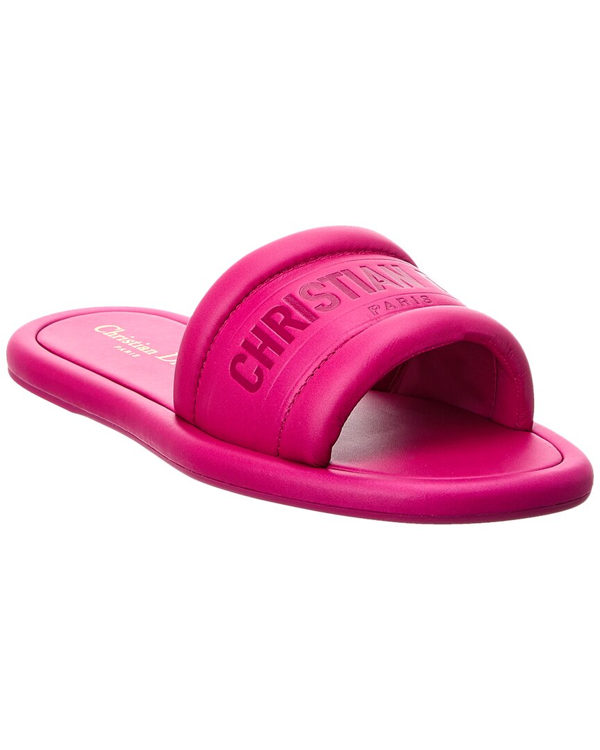 Introducing the Dior Every-D Leather Slide, a luxurious and elegant addition to your shoe collection. Made in Italy, these pink leather slides feature the iconic Dior logo print and a lightly padded leather insole for all-day comfort. The smooth man-made sole ensures durability and style. Elevate your look with these timeless French luxury slides from Dior. Our products are , ensuring with every purchase. Size selections are European - for US conversions, please reference the size chart. Add a touch of sophistication to your wardrobe with the Dior Every-D Leather Slide.