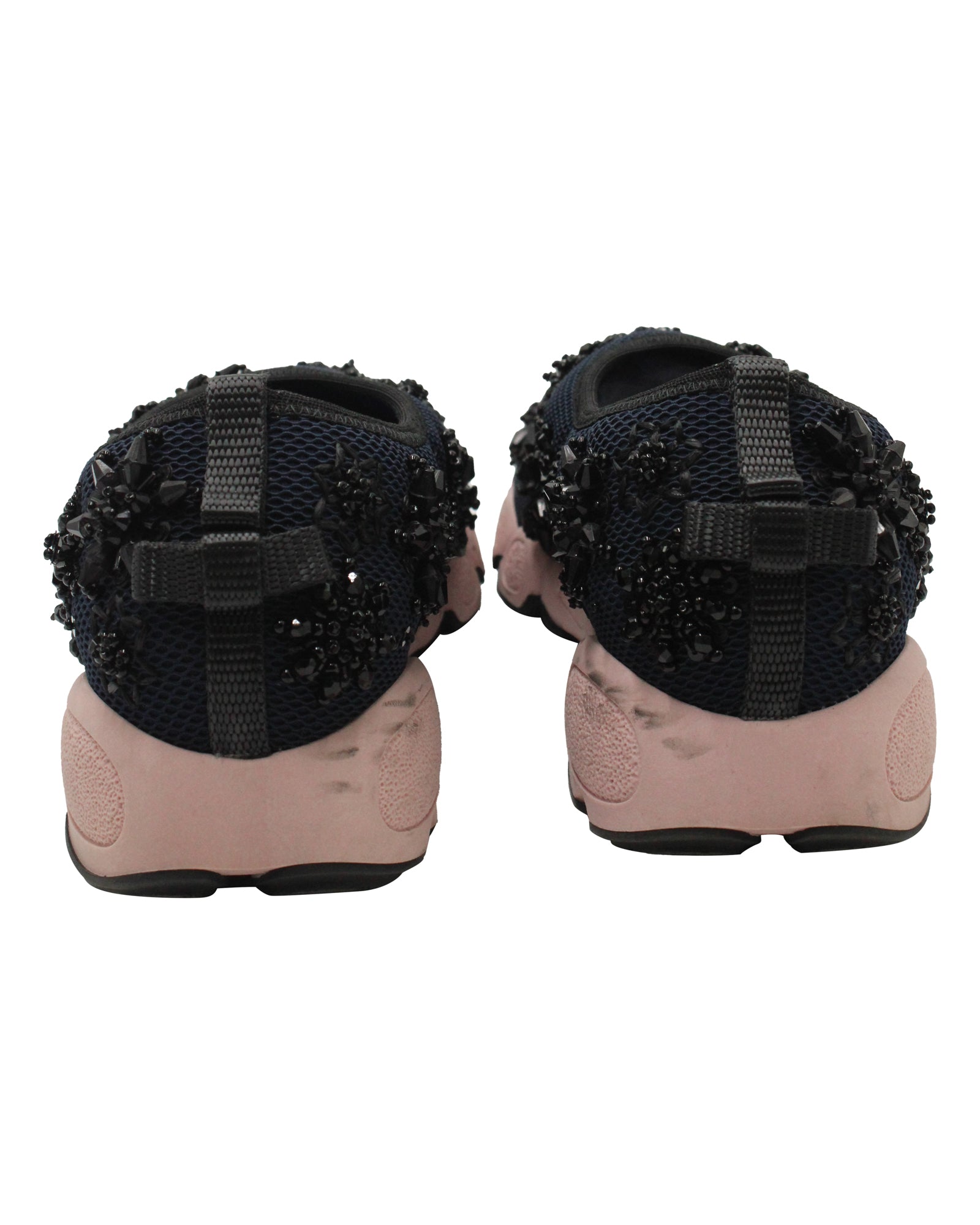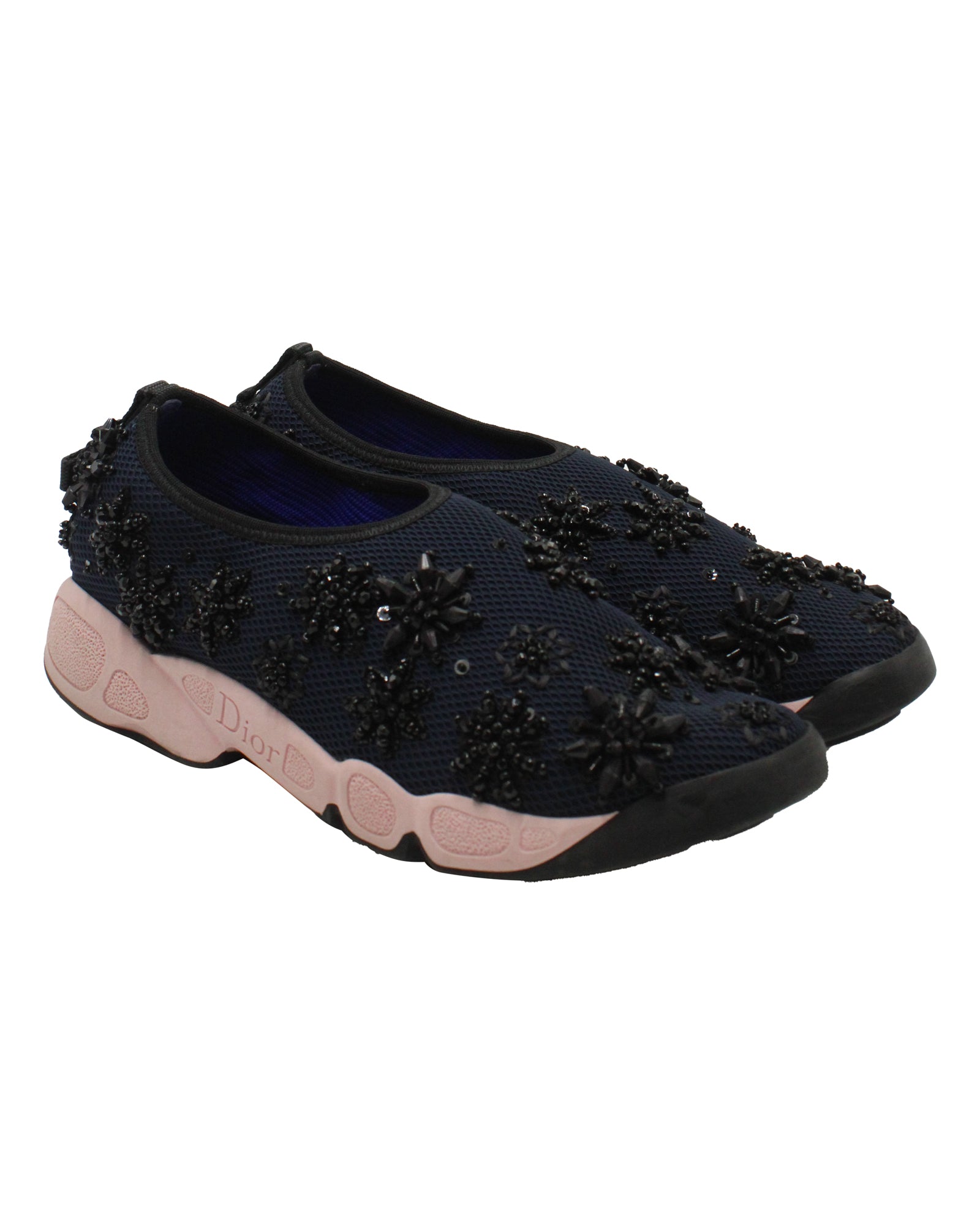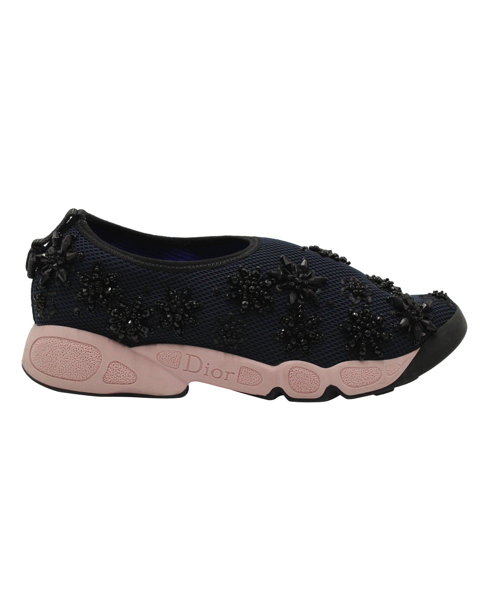 Dior Fusion Embellished Slip-On Sneakers in Navy Blue Mesh
