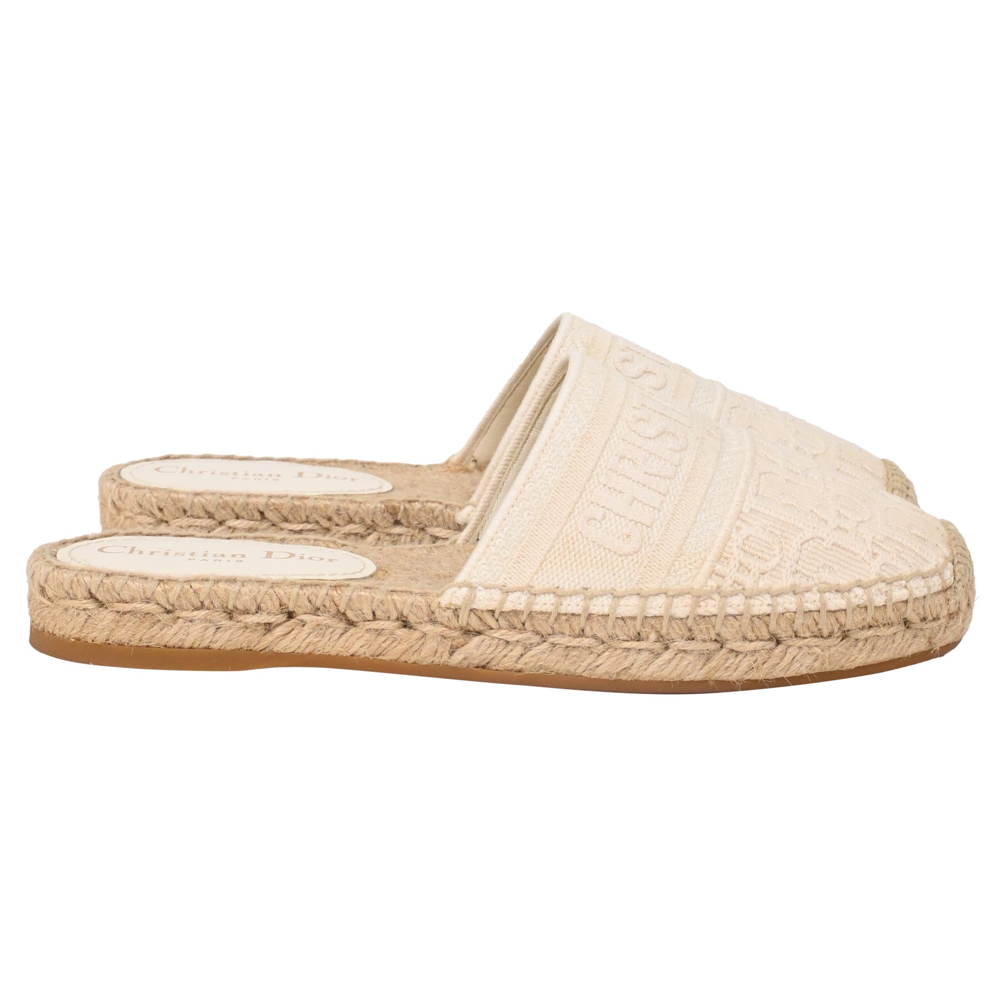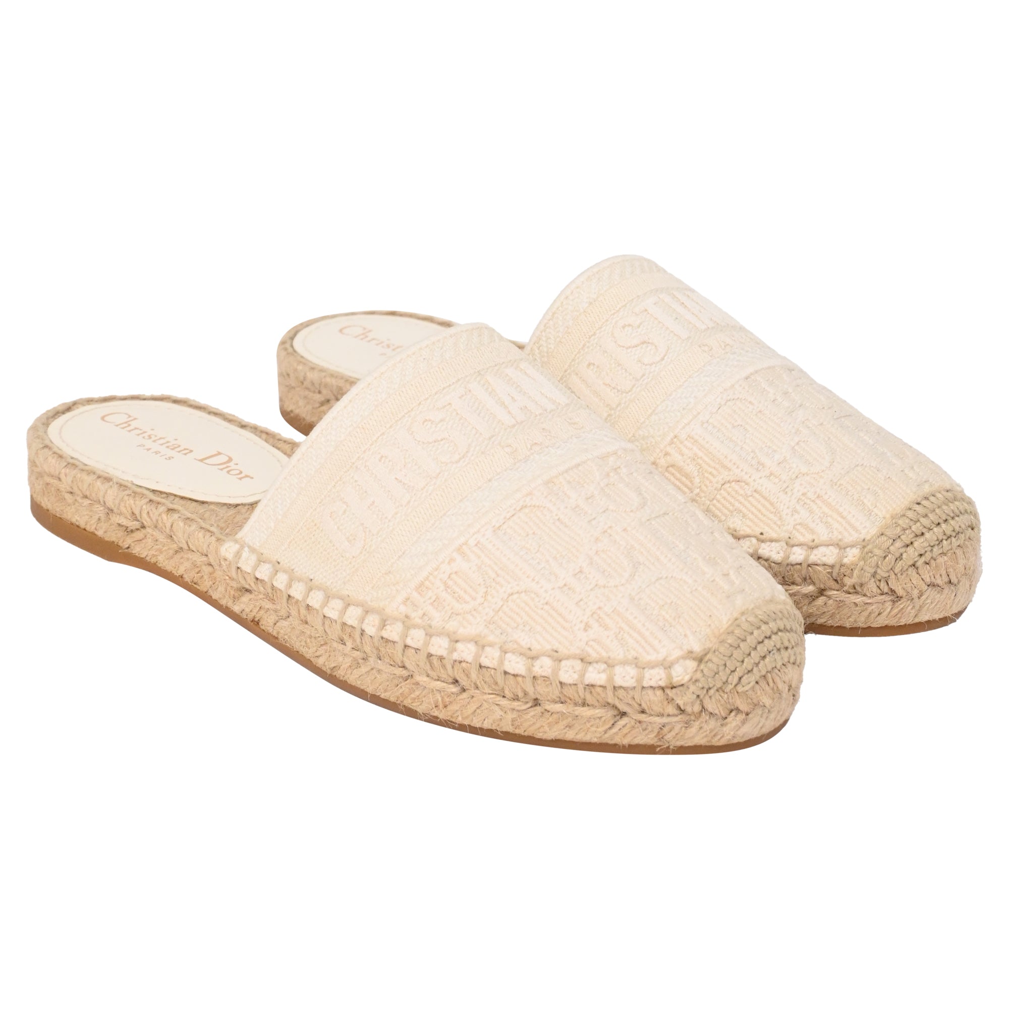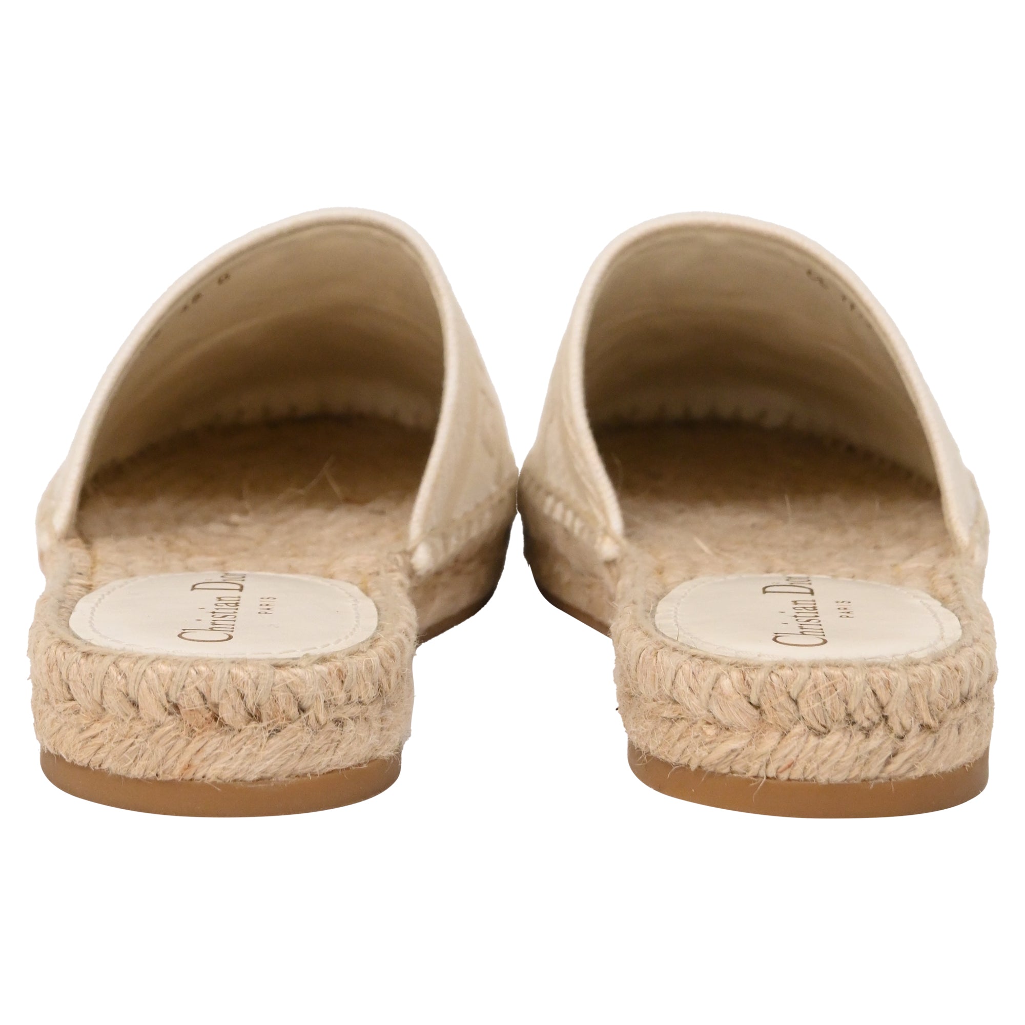 Dior Granville Embroidered Flat Espadrille Mules in White Cotton