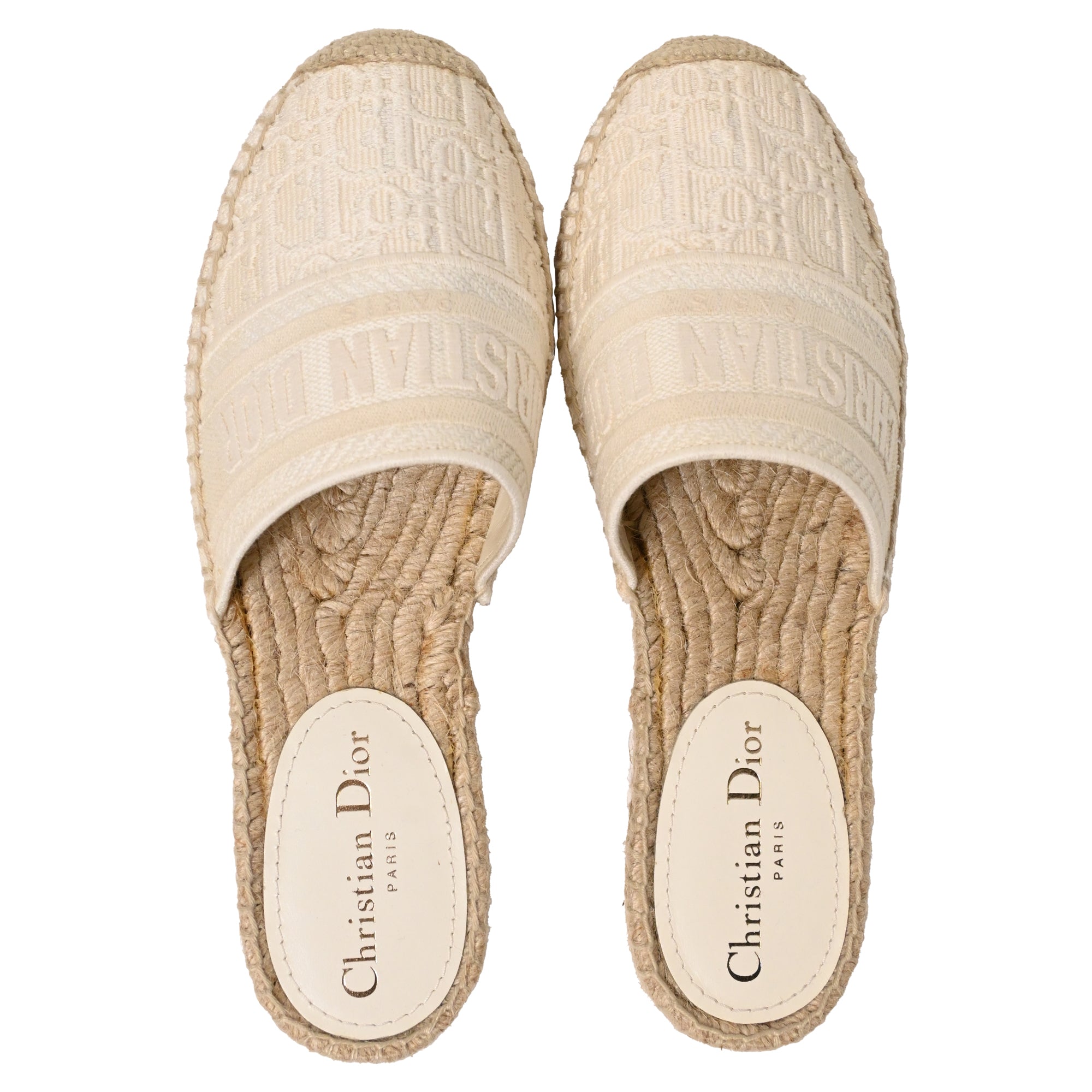 Elevate your summer wardrobe with the Dior Granville Embroidered Flat Espadrille Mules in White Cotton, a luxurious blend of style and comfort. These Christian Dior Canvas Espadrilles feature a chic Dior monogram pattern and classic round toes, exuding an air of sophistication and elegance. Complete with raffia soles for a touch of natural texture, these mules are the epitome of high-end fashion for the warmer seasons.with box and dust bagDior Granville Embroidered Flat Espadrille Mules in White CottonCondition - ExcellentSigns of wear - No visible sign of wear. No Mark at insole., Out of store condition, No sign of being .Packaging - Box, Dust bagColor - WhiteMaterial - cottonSize - EU36/US6Measurements - Heel height - 20; Insole length - 240SKU - NAPPUHKSH424422W