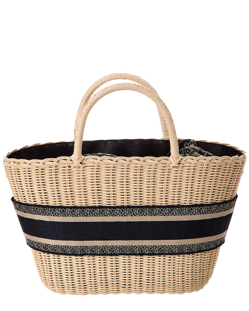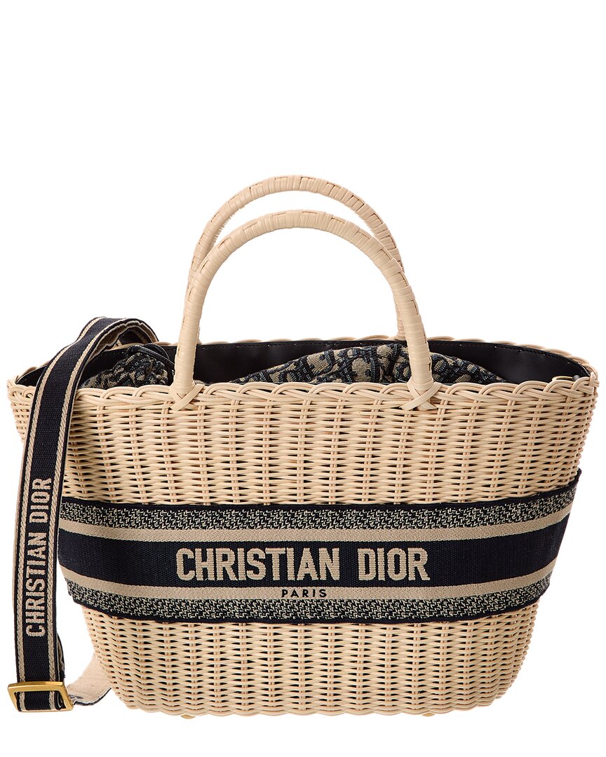 Introducing the luxurious 'Dior Hat Basket Bag' from the iconic brand Dior. This exquisite shoulder bag is crafted in Italy from natural straw and features elegant gold-tone hardware with a logo canvas band. The interior is lined with logo printed canvas and includes a convenient zippered pocket.Measuring 14 inches wide, 8.5 inches high, and 5 inches deep, this bag is spacious enough to carry all your essentials. The top handles have a 4-inch drop, while the adjustable and removable shoulder strap offers a versatile 30-inch drop. The bag closes with a stylish drawstring closure and is adorned with protective feet at the bottom.Please note that all measurements were taken by hand and are approximate, and slight variations may occur. Rest assured, our products are . While we do source some merchandise from trusted suppliers, we the of every product sold on our site. Elevate your look with the timeless elegance of Dior with the 'Dior Hat Basket Bag'.