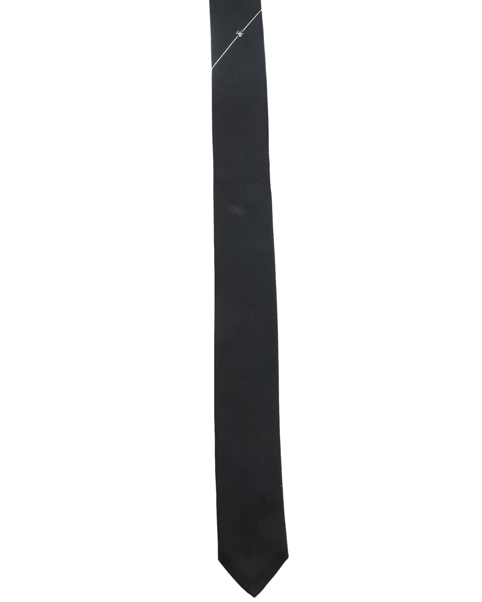 This Dior tie is a perfect formal accessory that has a sharp and modern appeal. Made from luxurious materials, it features plain but simple solid hue with an embroidered beetle design. The brand label is neatly stitched at the back. It is sure to add oodles of style to your blazers.Dior Homme Beetle Skinny Tie in Black SilkCondition - very goodSign of wear - minimal signs of wearColor - Black Material - SilkSize - One SizeWidth - 45 Length - 1550SKU - 208205