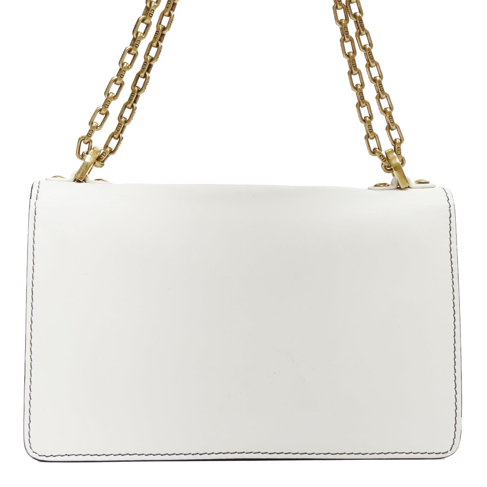 DIOR J'Adior Medium white leather gold letter chain flap crossbody bag