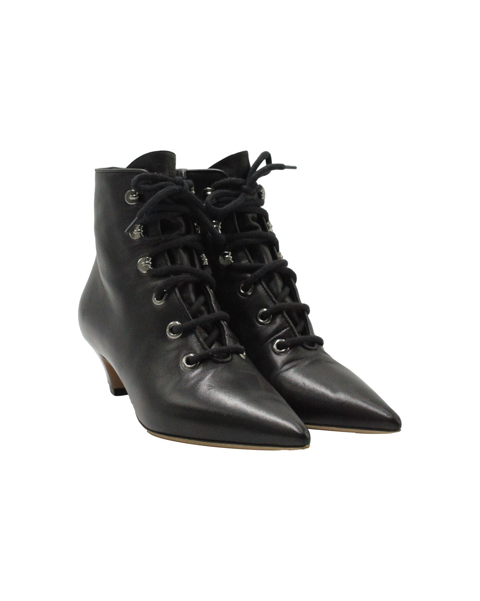Dior Lace-Up Pointed-Toe Ankle Boots in Black Leather