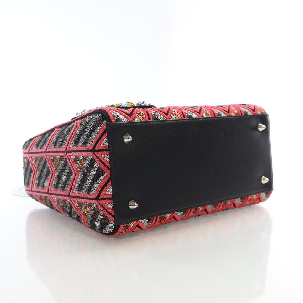 Product Description - With its sumptuous sequined exterior, this Lady Dior is the ultimate accessory for any glamorous diva who wants to shimmer and shine. It's the kind of handbag that demands attention, so be prepared for all eyes to be on you when you have this beauty dangling effortlessly from your shoulder! Certified EN,Condition Description - 9.5/10 (some minor flaws),Material - Sequins,Patent,Hardware - Silver,Size - Medium (9" x 8" x 5.5"),Includes - Card, Strap