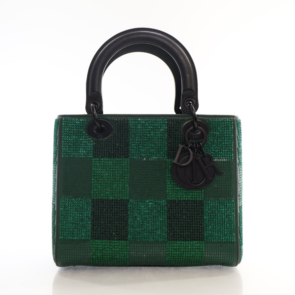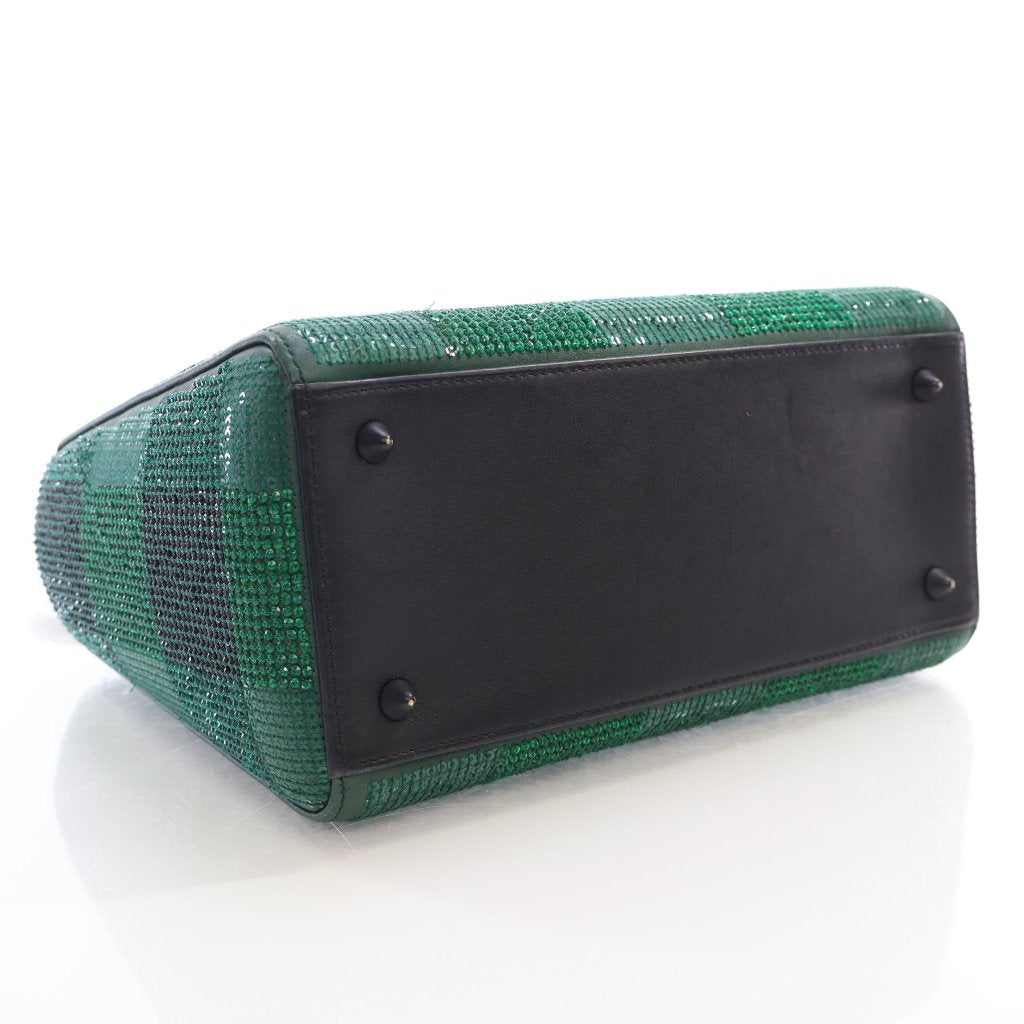 Product Description - Certified EN/NC,Condition Description - 9.5/10 (some minor flaws),Material - Crystals,Calfskin,Hardware - Black,Size - Medium (9.25" x 8" x 3.5"),Includes - Strap