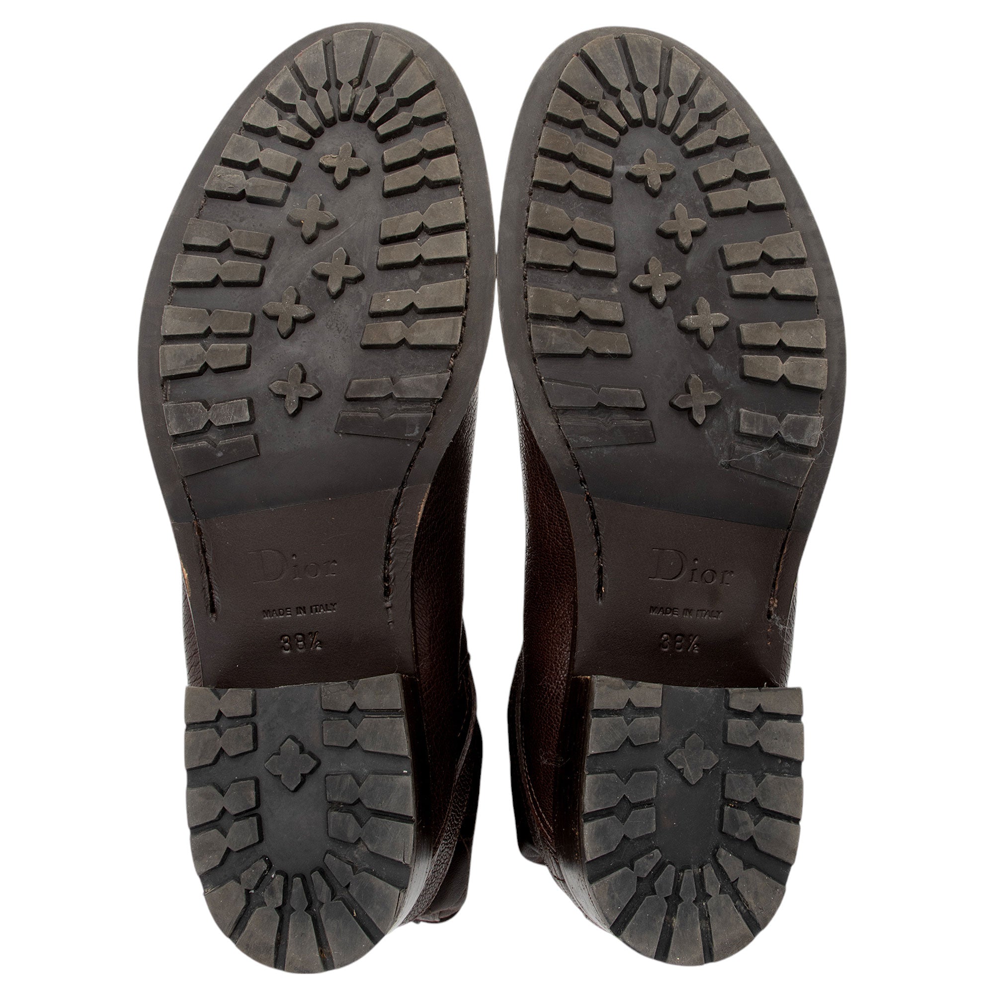 Condition Notes - Scuffs throughout outsoles. Light creasing and minor scuffs throughout insoles and uppers. Light surface scratches to hardware. Please note - Dior shoes typically runs a 1/2 to 1 full size smaller. all sizing is dependent of shoe style. Read product details carefully. These are brown boots.