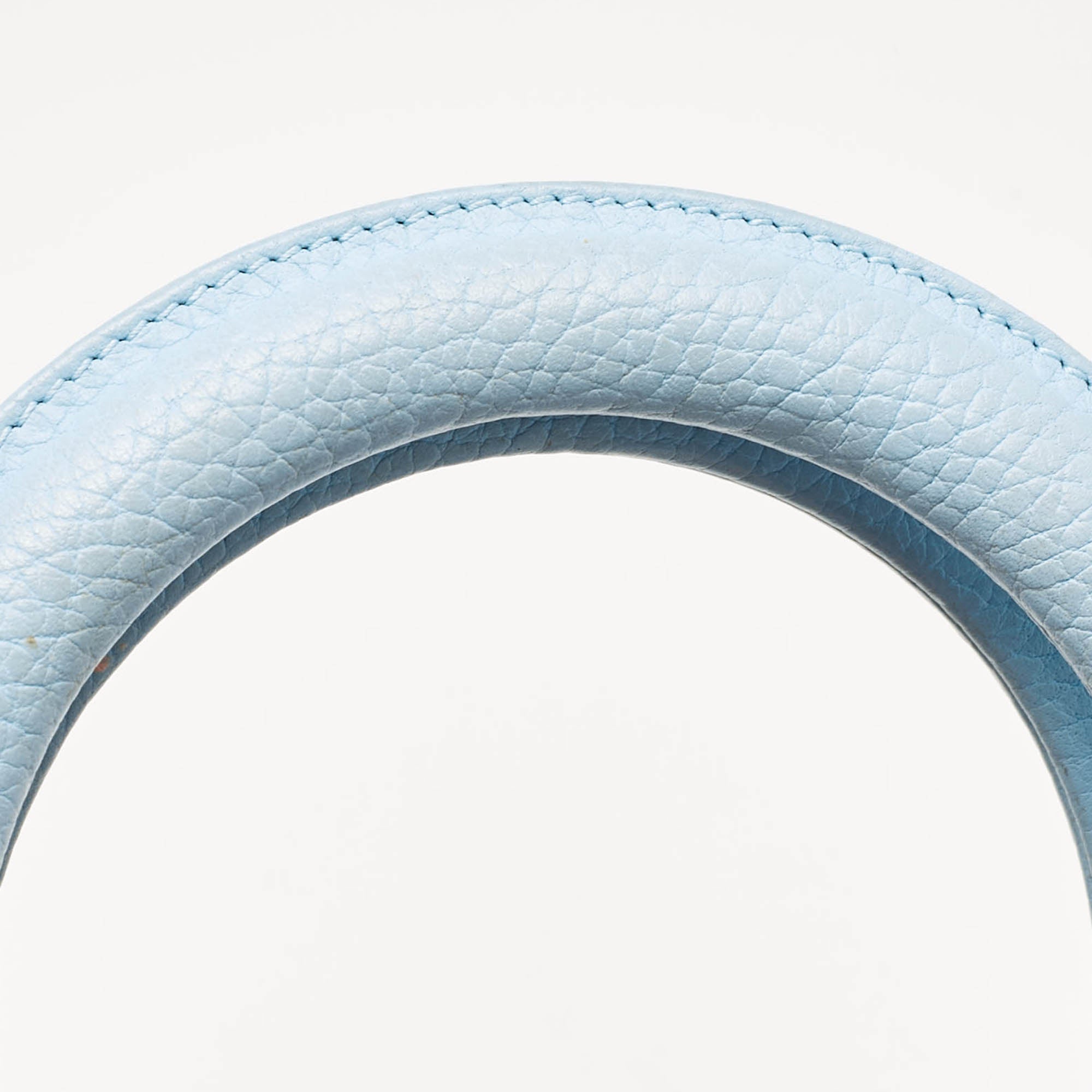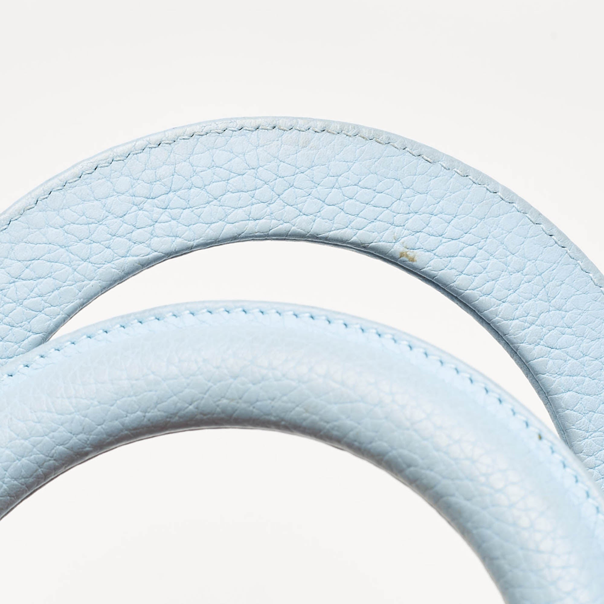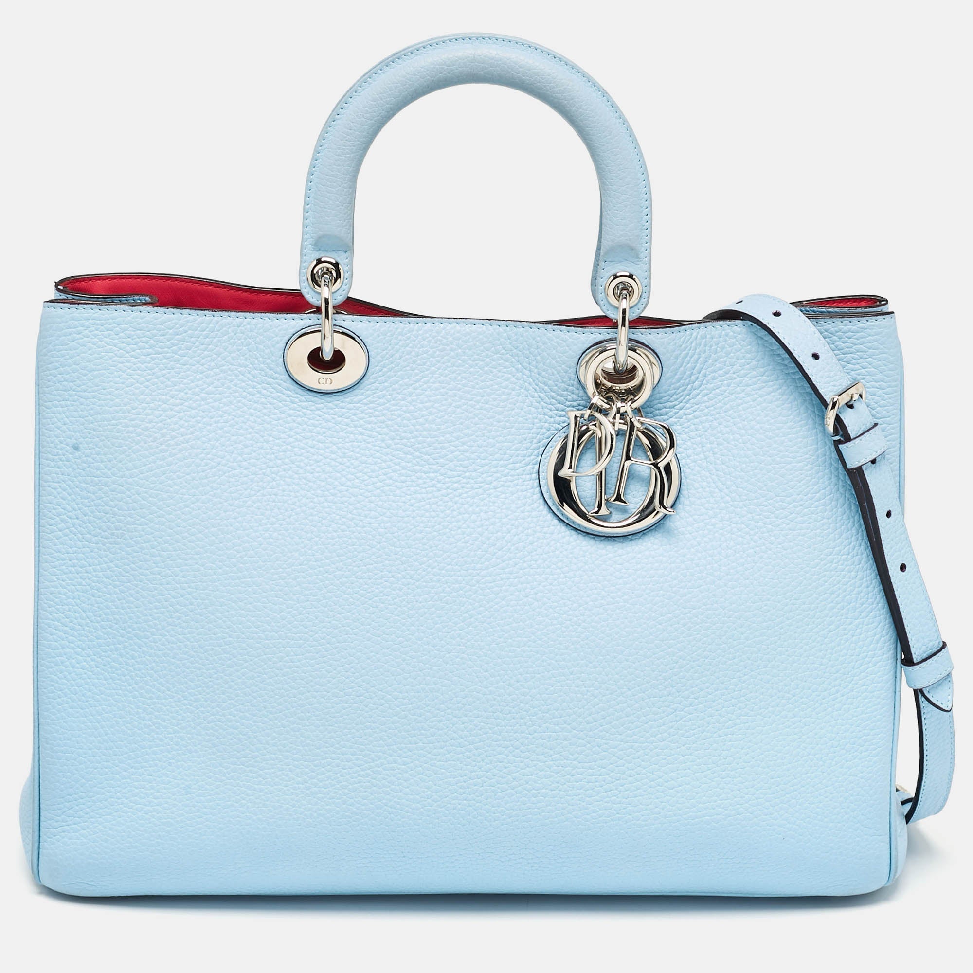 A sophisticated Dior shopper tote in light blue leather the Diorissimo combines elegance with practicality for daily use. It has classic brand elements and a bright pink interior.