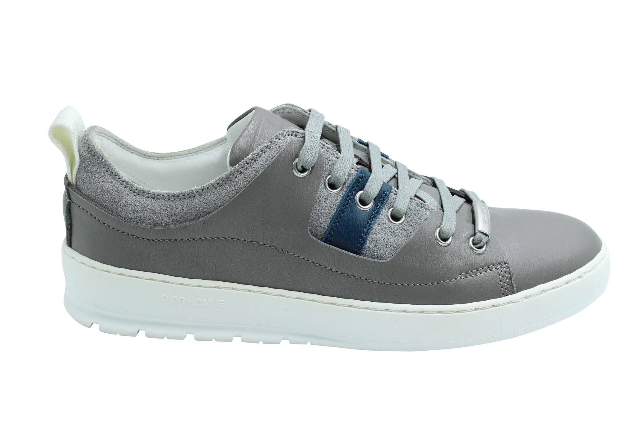 These low top sneakers is a classic in the Dior Men wardrobe. Crafted in smooth grey leather it has a lace-up front with a metal plate on with a Dior Homme embossed on it. It can be with jeans or suit pants.Dior Low Top Sneakers in Grey LeatherCondition - New with TagSign of wear - NoMaterial - LeatherSize - 39.5SKU - 120234