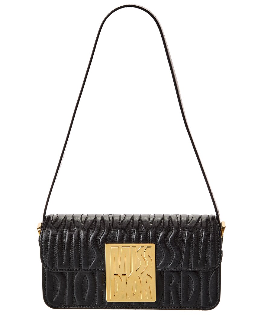 Elevate your style with the elegant and timeless French luxury of the Dior Miss Dior Leather Shoulder Bag. Crafted in Italy, this black logo-quilted leather bag features gold-tone hardware for a touch of glamour. The interior is lined with luxurious leather and includes a convenient wall pocket for organization. With a width of 8.75 inches, height of 4.5 inches, and depth of 2.5 inches, this shoulder bag is the perfect accessory for any occasion. The adjustable shoulder strap allows for a drop of 17 inches, and the fold-over flap with magnetic closure keeps your belongings secure. Please note that all measurements are approximate and slight variations may occur. Rest assured, our products are , sourced from trusted independent suppliers. Add a touch of sophistication to your look with the Dior Miss Dior Leather Shoulder Bag.