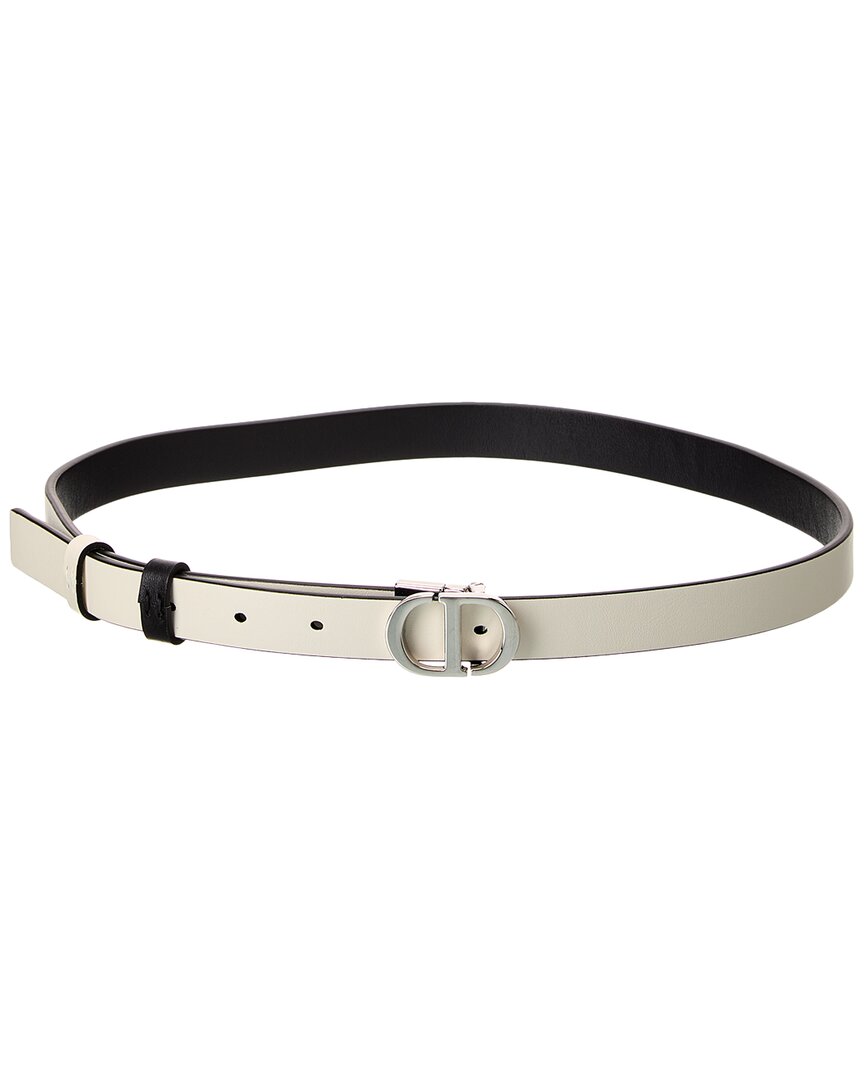 Introducing the luxurious Dior Montaigne Reversible Leather Belt, a must-have accessory for any fashion-forward woman. This elegant belt features black leather on one side and white leather on the other, allowing for versatility in styling. The silver-tone hardware and pin buckle closure add a touch of sophistication to any outfit. Made in Italy with the finest craftsmanship, this belt measures 1 inch wide and is perfect for adding a chic touch to your ensemble. Please note that sizing is in centimeters, so be sure to refer to the size chart for US conversions. When you purchase from us, you can be confident that you are receiving a Dior product. While some items are sourced from trusted independent suppliers, we the of every item sold on our site. Elevate your accessories collection with the timeless French luxury of the Dior Montaigne Reversible Leather Belt.