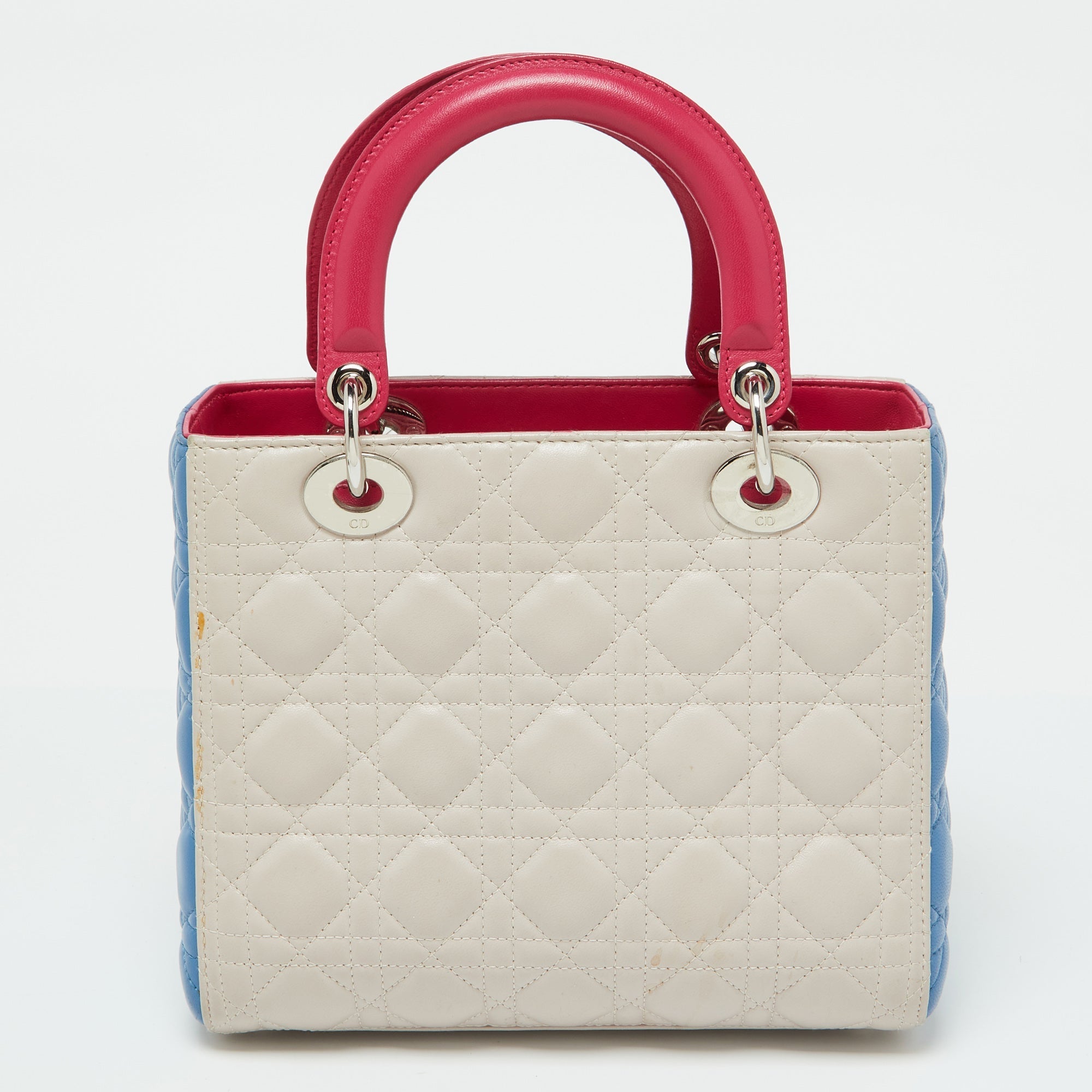 Due to detailed and innovative designs Dior has managed to be at the top of fashions hierarchy through the years. Infuse the signature aesthetics of the brand into your outfit by accessorizing it with this Lady Dior tote. With a classic design it is crafted from leather with a striking Cannage pattern and the brands letter charms mark its quality craftsmanship. The double handles at the top a shoulder strap and its perfectly sized interior make it a functional companion for your next soiree.
