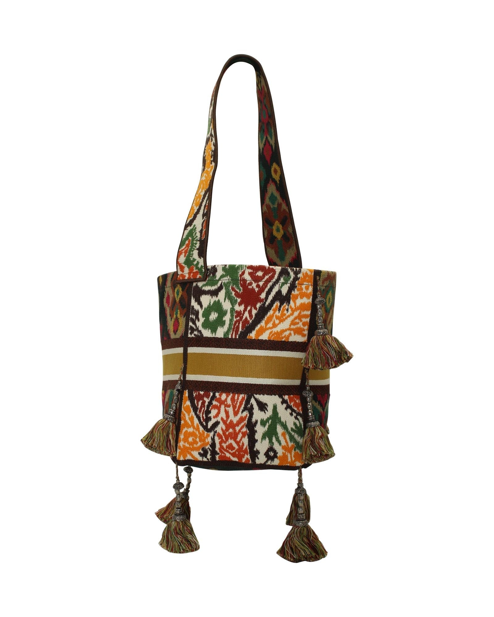 This instantly recognizable Dior Paisley Embroidery D-Bucket Bag is crafted from a luxurious, embroidered canvas which has been expertly printed to make each bag unique. Embellished with many tassels and a fabric top handle, this elegant tote is finished with an open top for easy access to your belongings.The bag in good condition, but lost the dust bag and .I purchase this bag from Dior boutique in Landmark HK a few years ago.Dior Paisley Embroidery D-Bucket Bag in Multicolor CanvasColor - multicolor printMaterial - CanvasCondition - excellentSign of wear - NoSKU - 340267 / NAPBKGBBA301621W Dimensions - Length - 170 mm, Width - 160 mm, Height - 240 mm