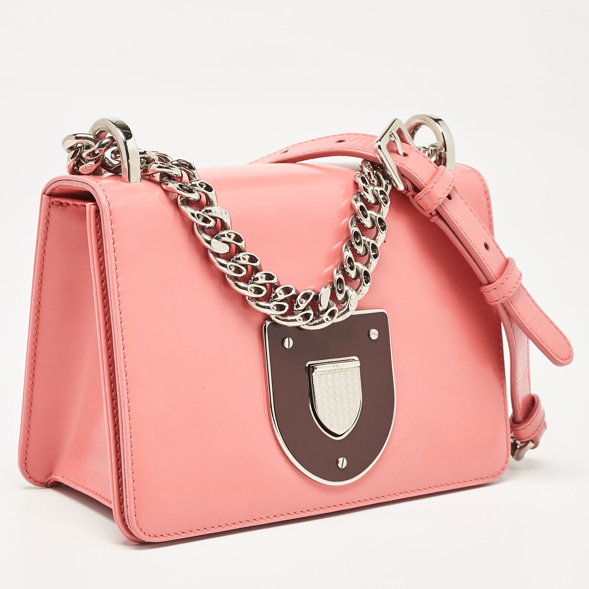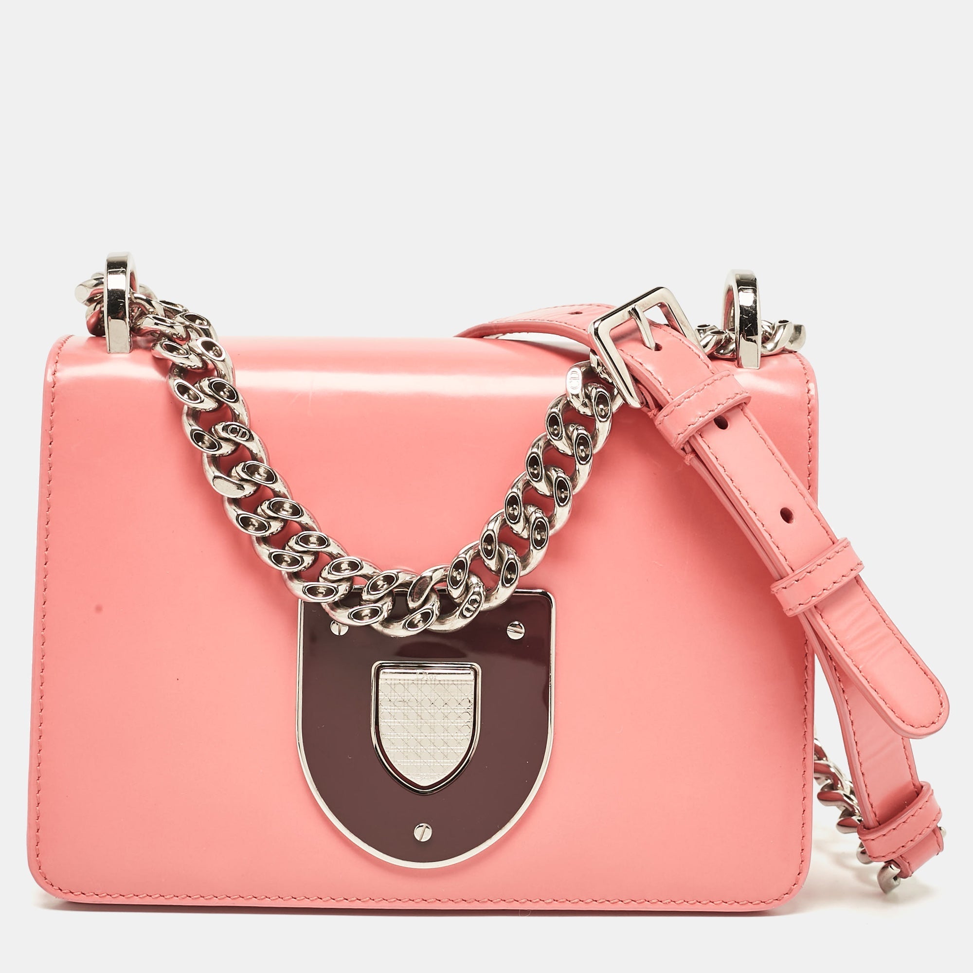 This Diorama Club bag makes a statement with its pink brushed leather and bold geometric hardware. Compact and chic it’s perfect for adding a pop of color to your ensemble.