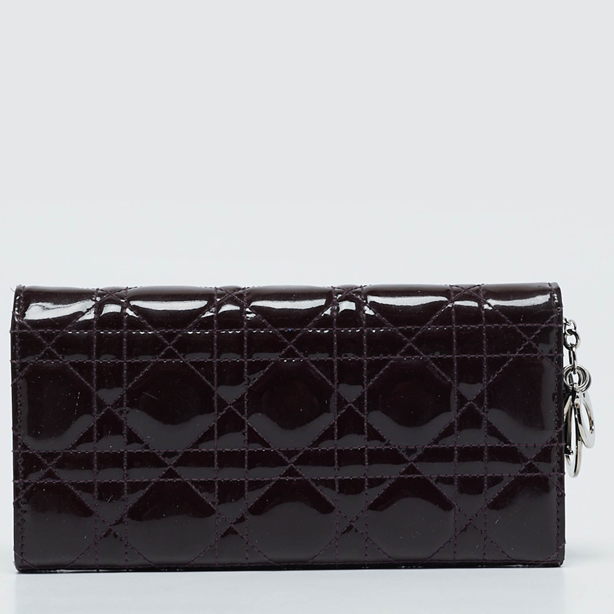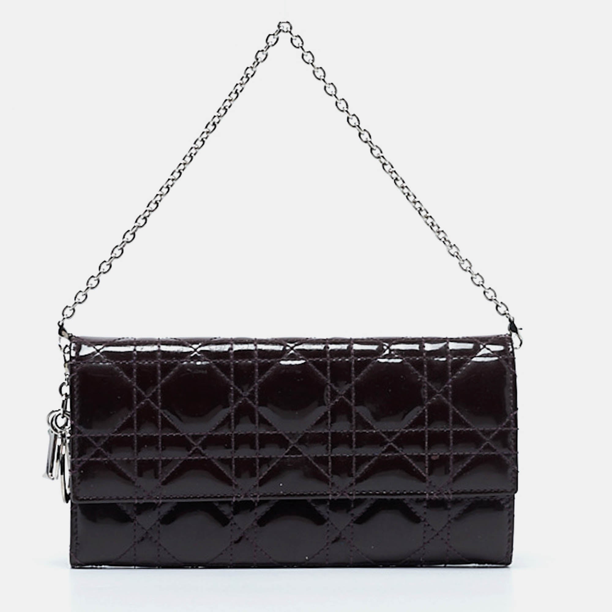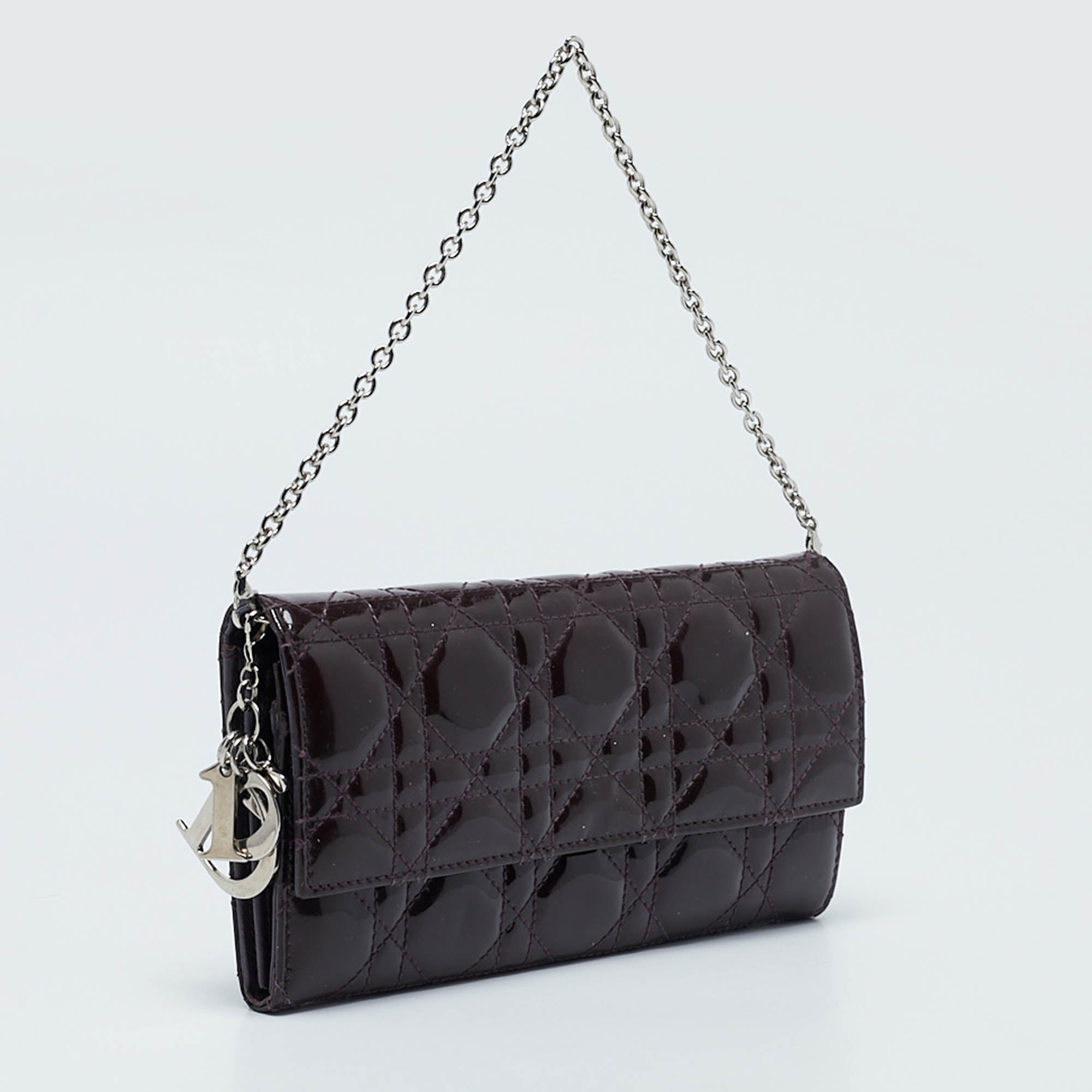 Crafted in Italy the glossy patent leather exterior of this purple WOC by Dior showcases the iconic cannage stitching. Its sleek design is perfect for evenings or fashionable daytime outings.