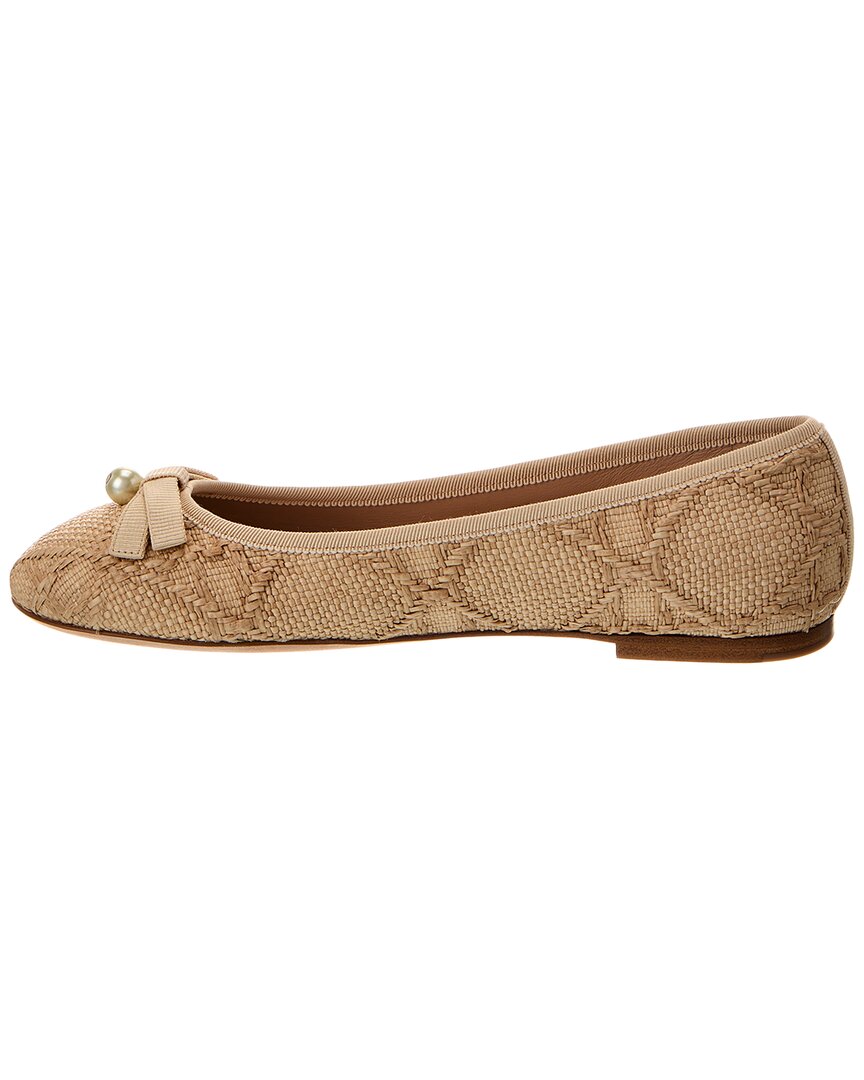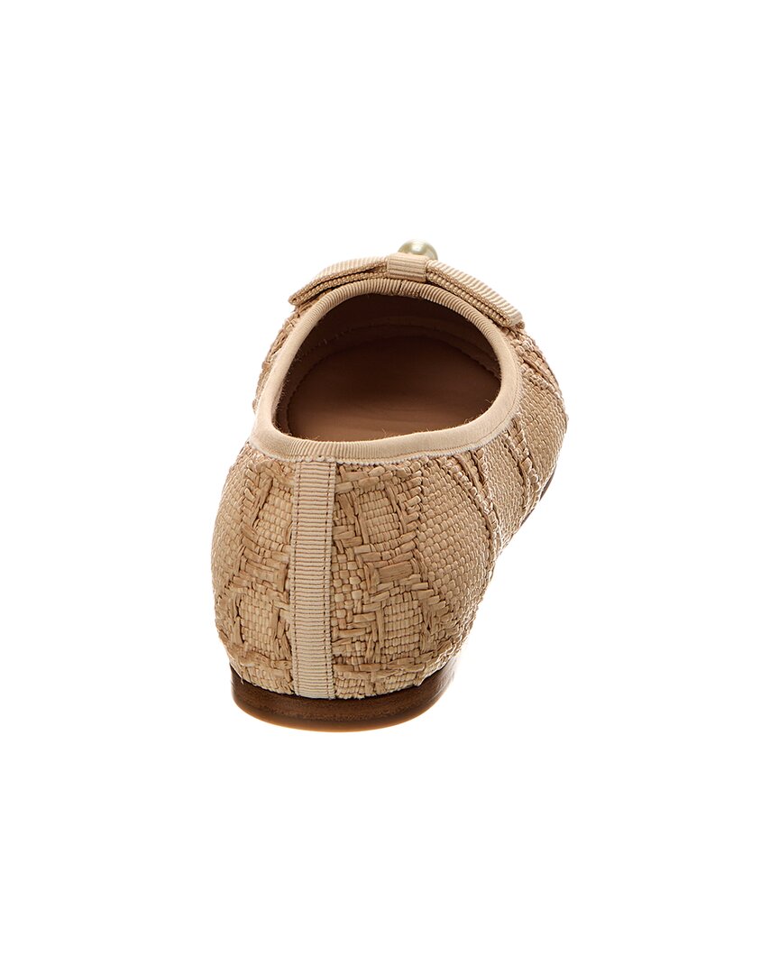 Introducing the Dior Raffia Ballet Flat, a timeless and elegant addition to any woman's shoe collection. Made in Italy, these flats feature a beige raffia design with gold-tone hardware, a grosgrain bow, and the iconic Dior logo pearl. The lightly padded leather insole and smooth leather sole provide comfort and style with every step. Please note that size selections are European, so be sure to reference the size chart for US conversions. Shop with confidence knowing that our products are , sourced from trusted independent suppliers. Elevate your look with these luxurious Dior flats today.
