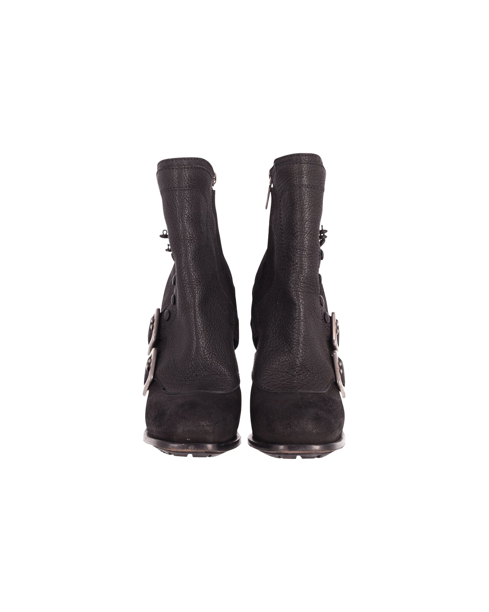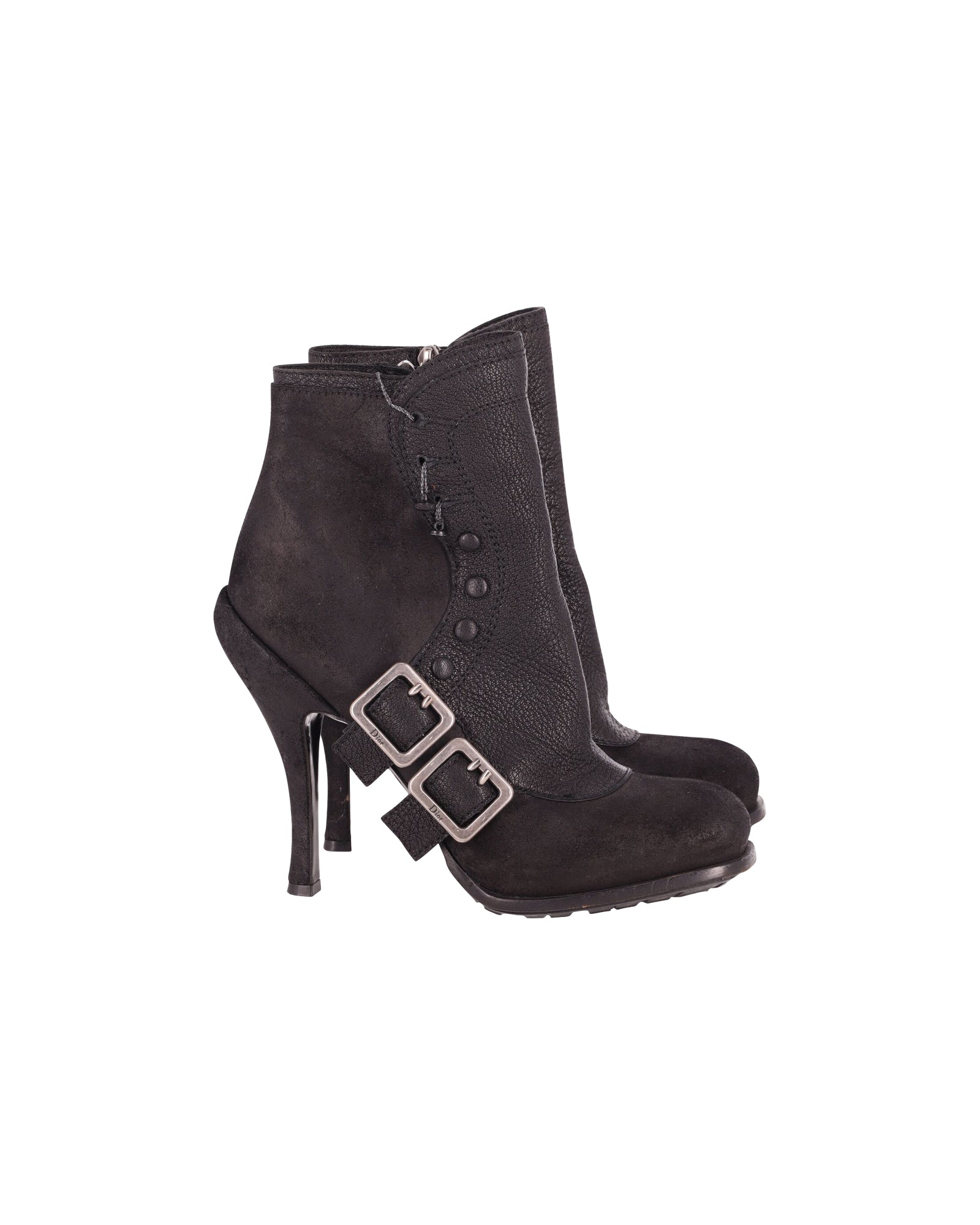 Dior Spy Button High Heel Ankle Boots in Black Leather