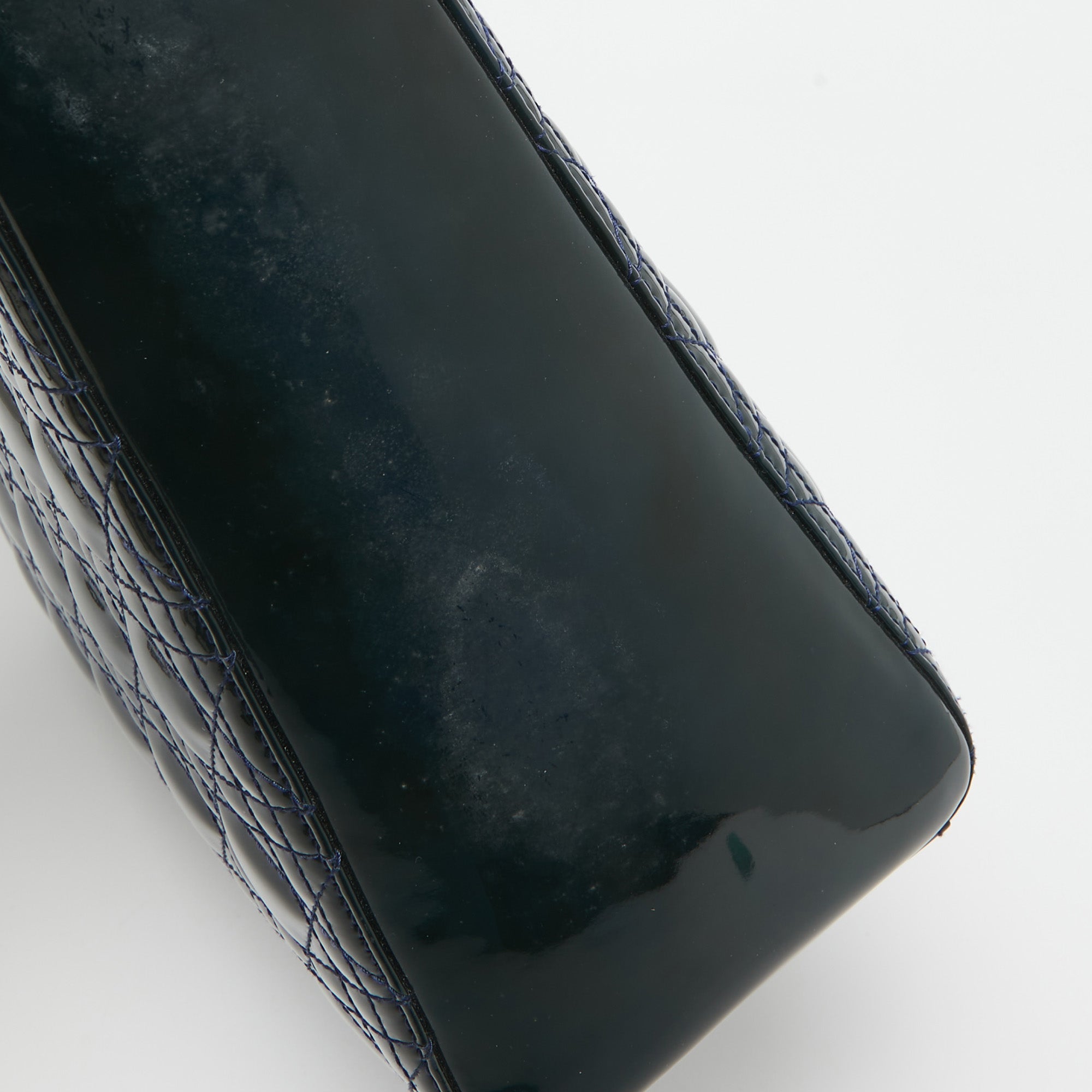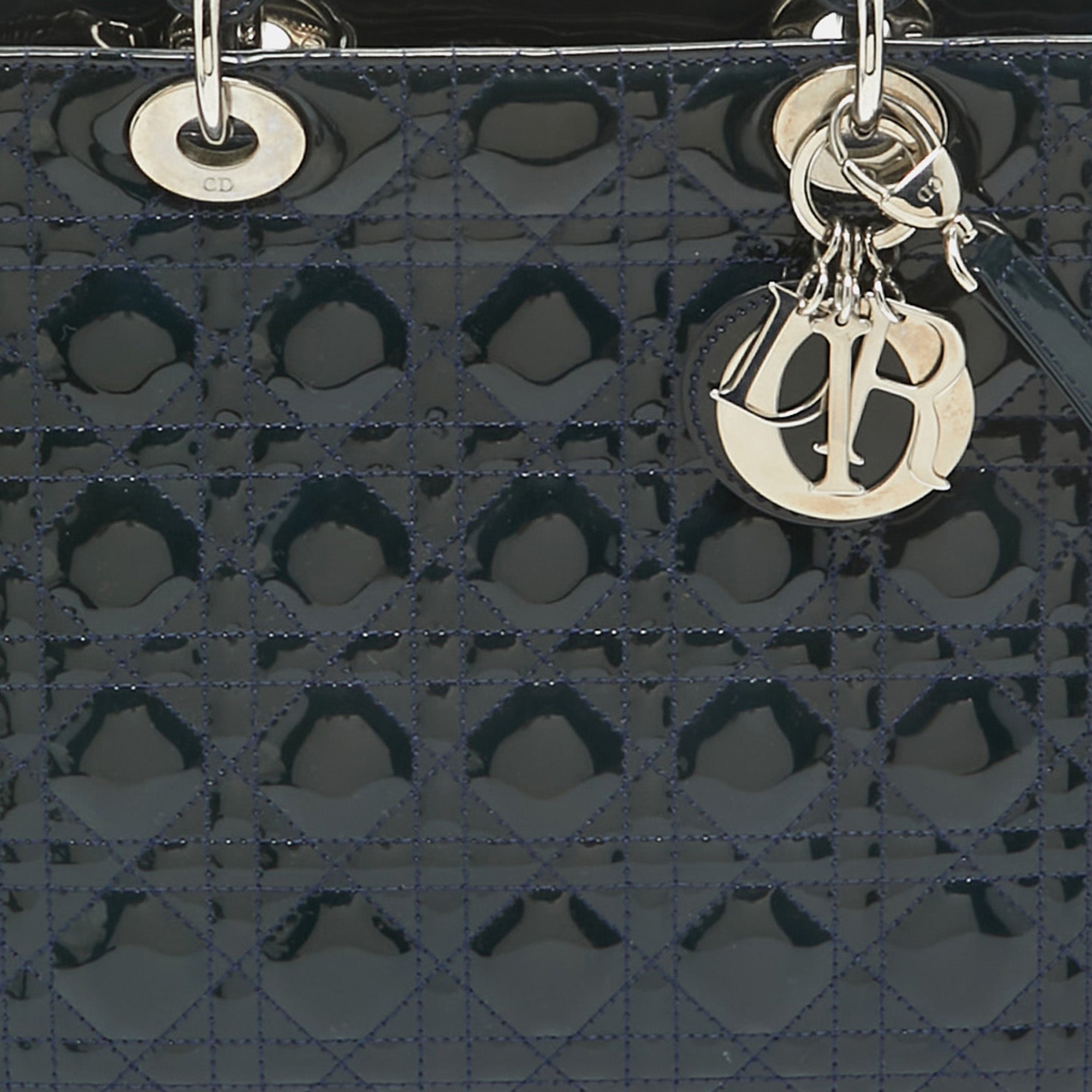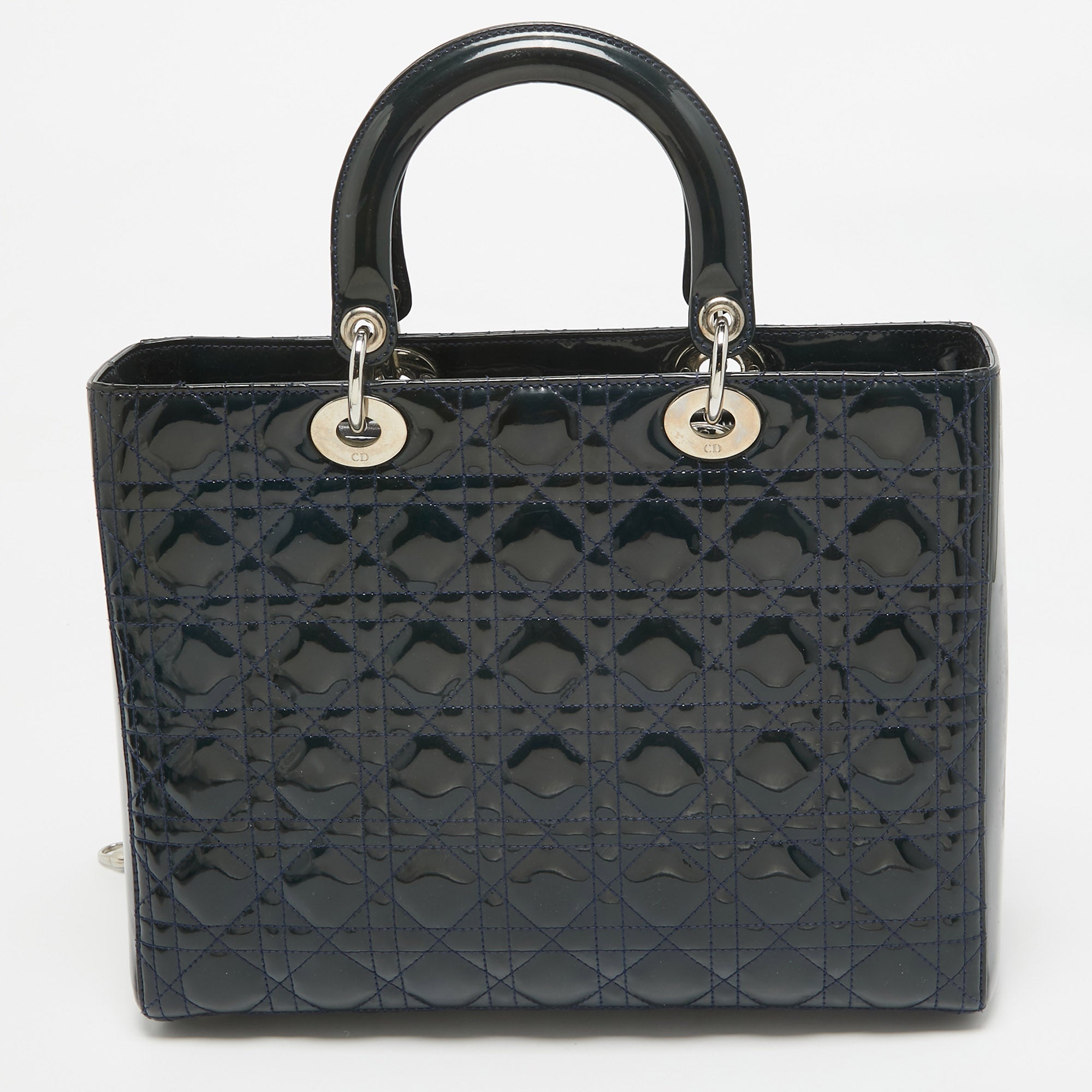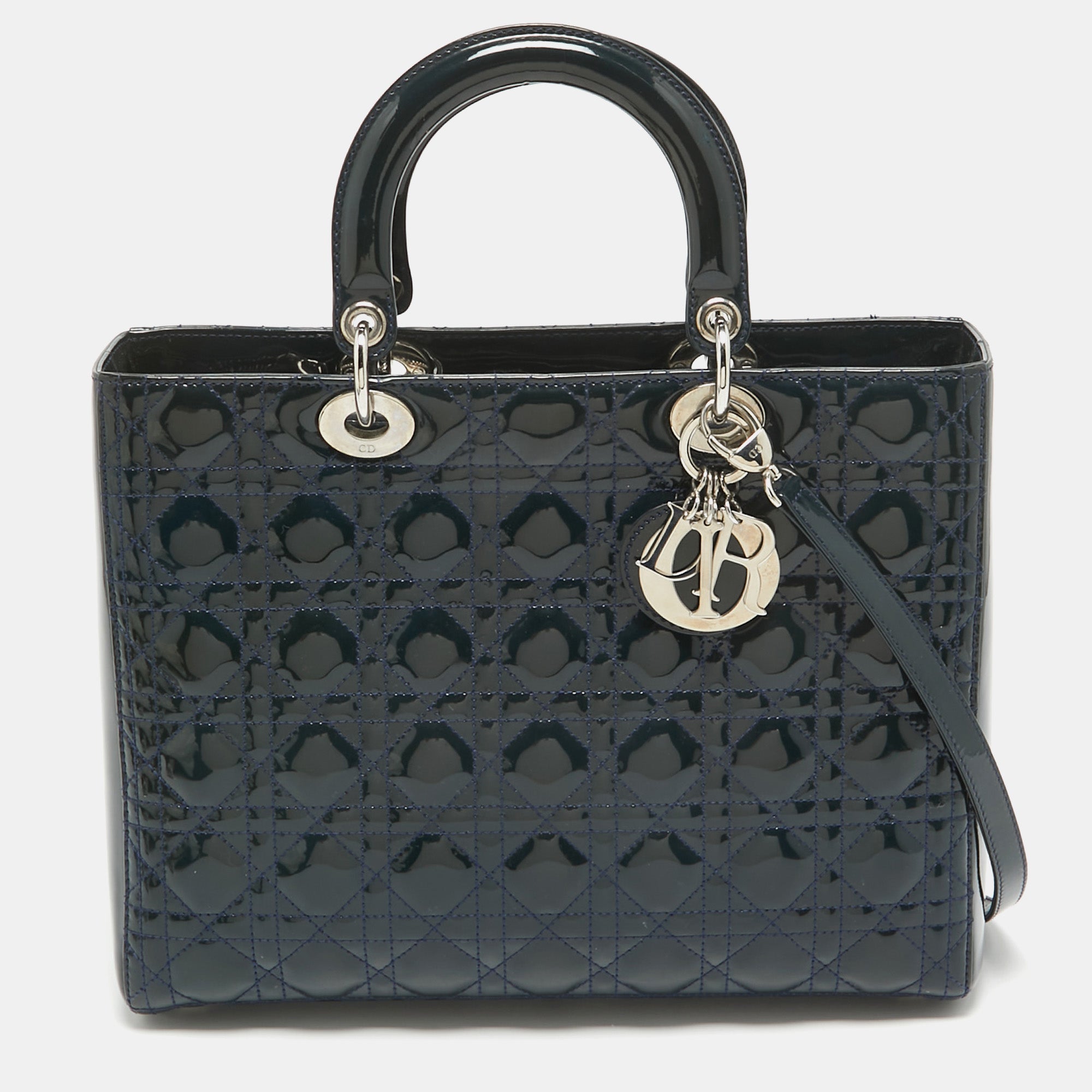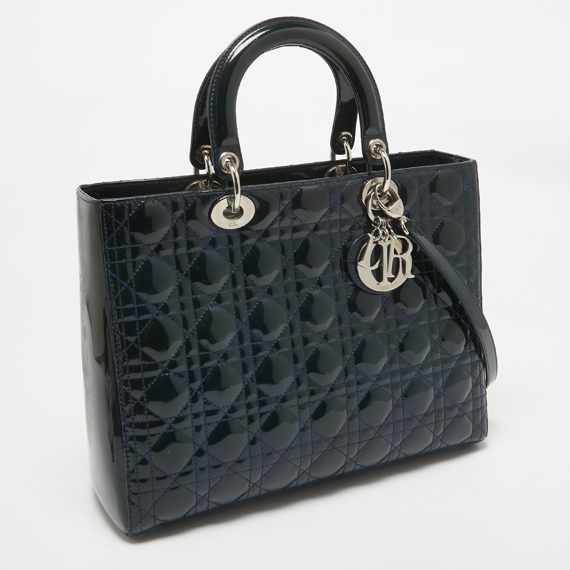 The Lady Dior tote from Dior is remarkable highly coveted and since its birth in 1994 it has swayed us with its shape design and beauty. This version is a joy to witness It comes meticulously crafted from teal blue leather and designed with their signature Cannage pattern all over and a spacious nylon interior for your essentials. It is complete with two top handles a shoulder strap and the classic Dior letter charms. This piece is sure to win your love.