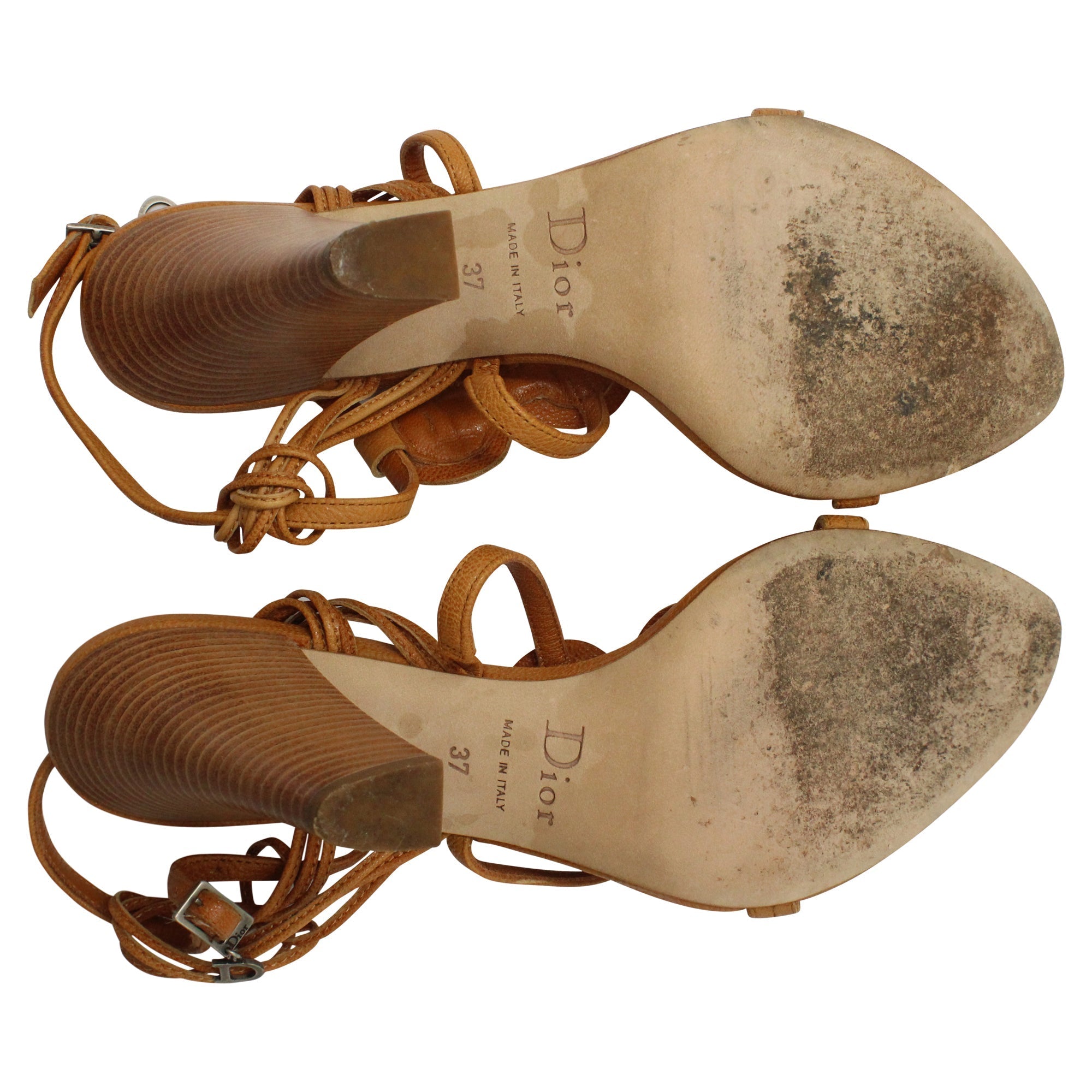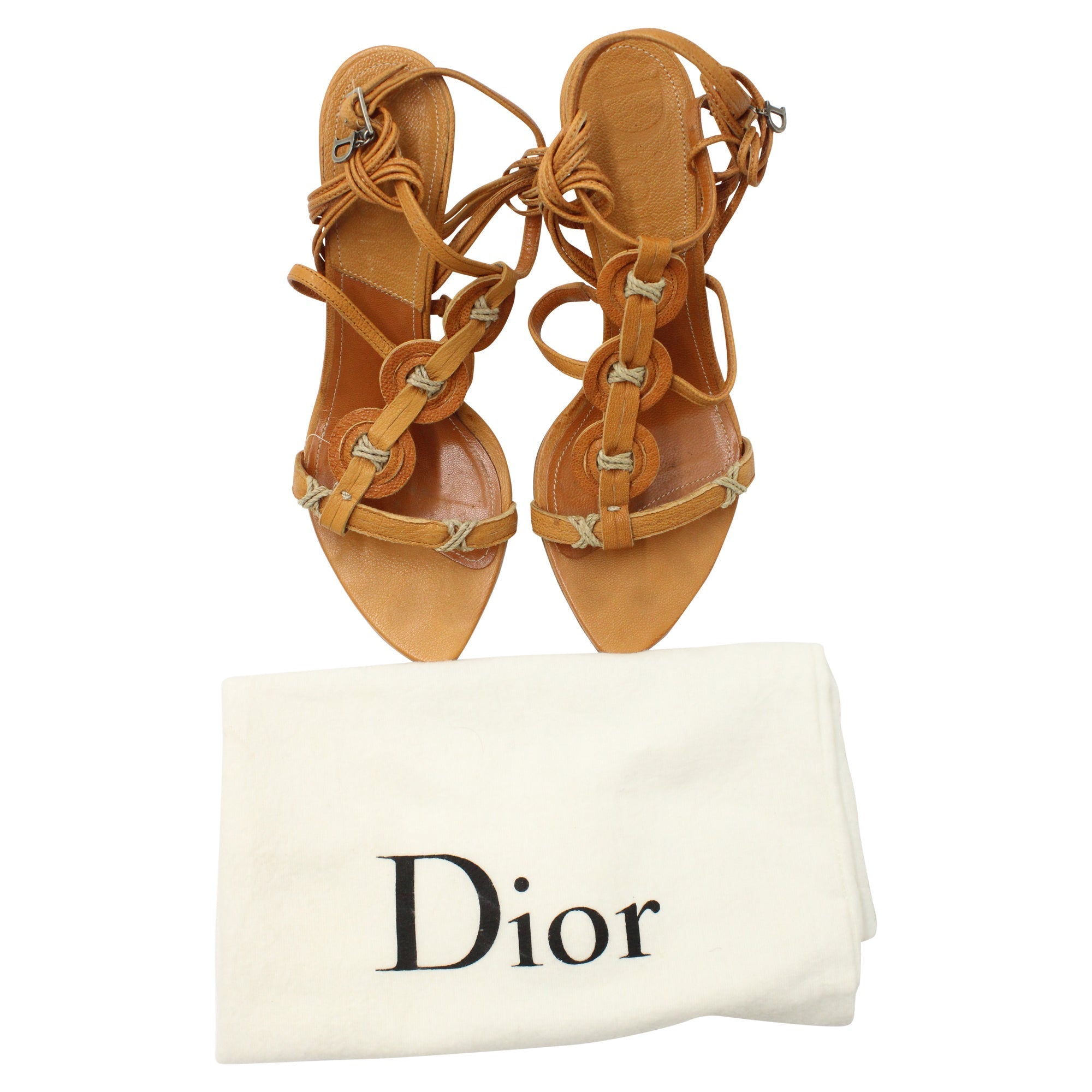 Dior Thong-Style Strappy Sandals in Brown Leather