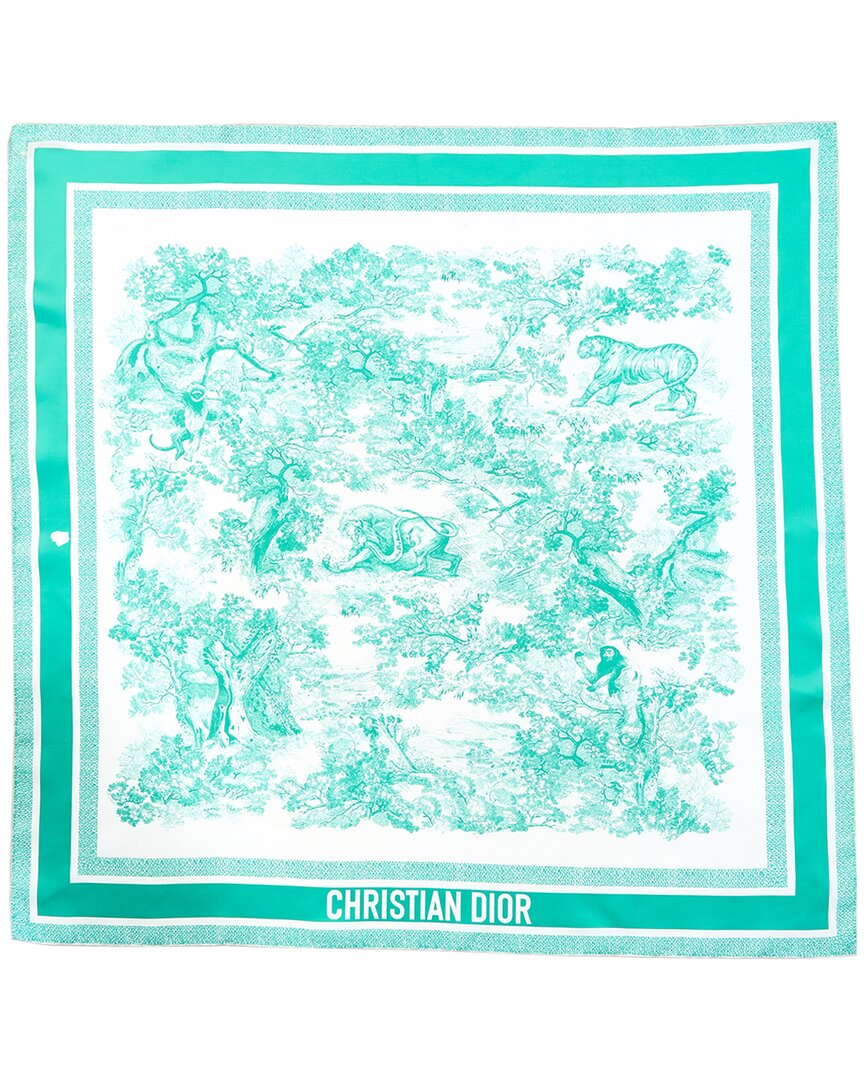 Introducing the luxurious Dior Toile de Jouy Silk Scarf in Green. This exquisite accessory measures 35.4 inches long x 35.4 inches wide and is made of 100% silk. Crafted in Italy, this scarf features the iconic Toile de Jouy pattern and is a timeless and elegant addition to any wardrobe. Please note that all measurements were taken by hand and are approximate, with slight variations that may occur. This stylish scarf is dry clean only and is , ensuring and quality. Elevate your look with this sophisticated Dior scarf, a must-have for any fashionista.