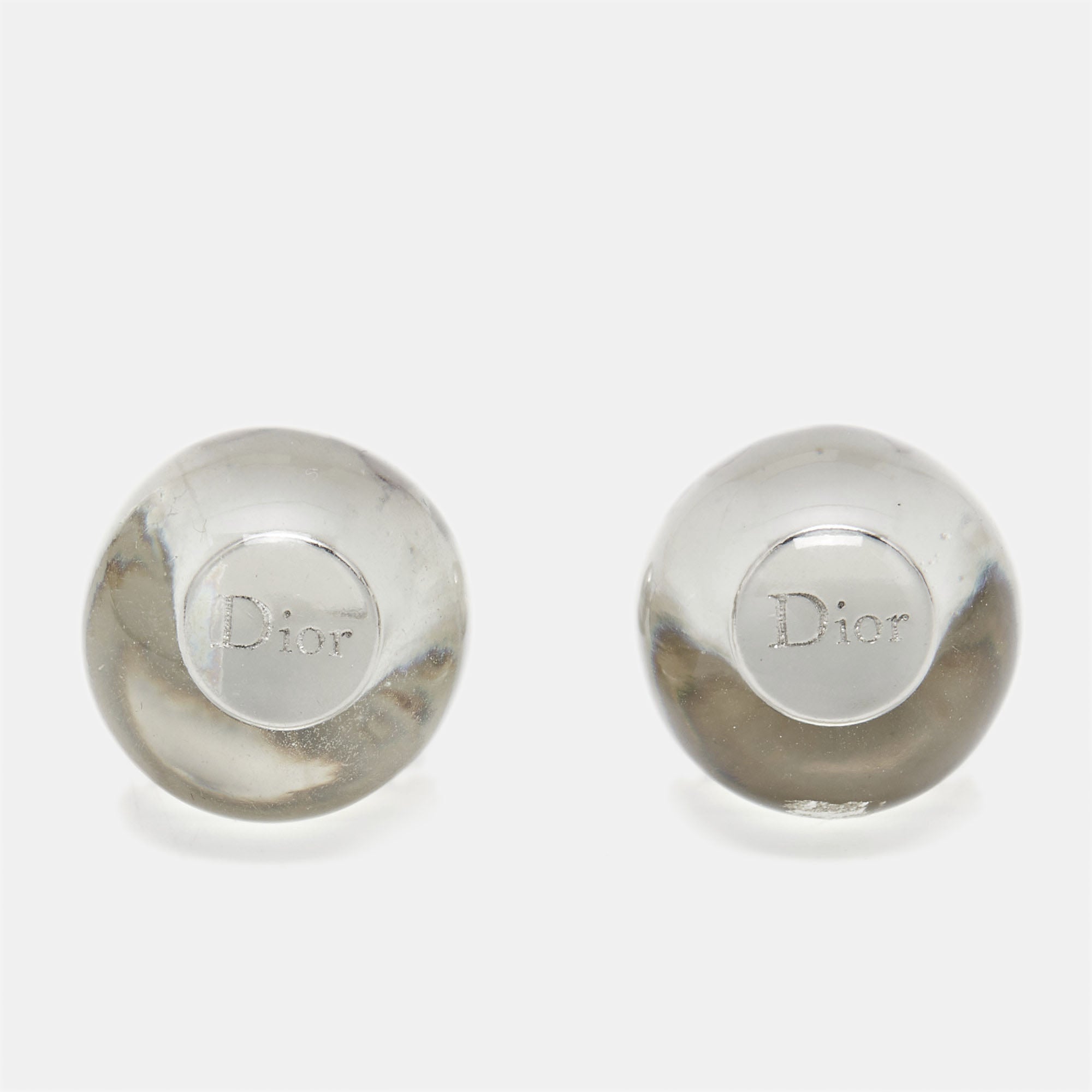 Dior Tribales Clear Resin Silver Tone Stud Earrings