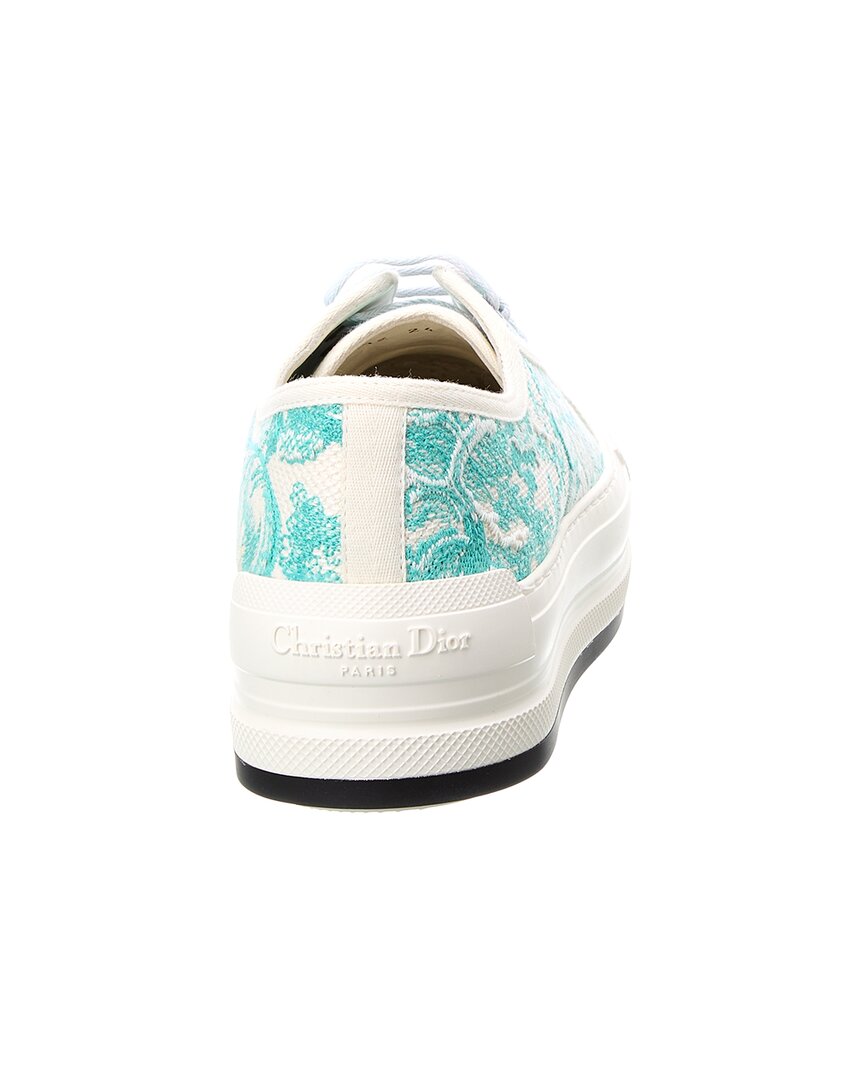 Elevate your casual footwear collection with the Dior Walk'N'Dior Canvas Sneaker. Made in Italy, these elegant and timeless French luxury sneakers feature teal and white embroidered canvas with silver-tone hardware and logo printed laces. The lace-up closure and lightly padded leather insole provide comfort, while the rubber sole with traction and 1.5 inch platform offer support and style. Please note that size selections are European, please reference the size chart for US conversions. Our products are , ensuring with every purchase. Add a touch of sophistication to your outfit with these stylish Dior sneakers.