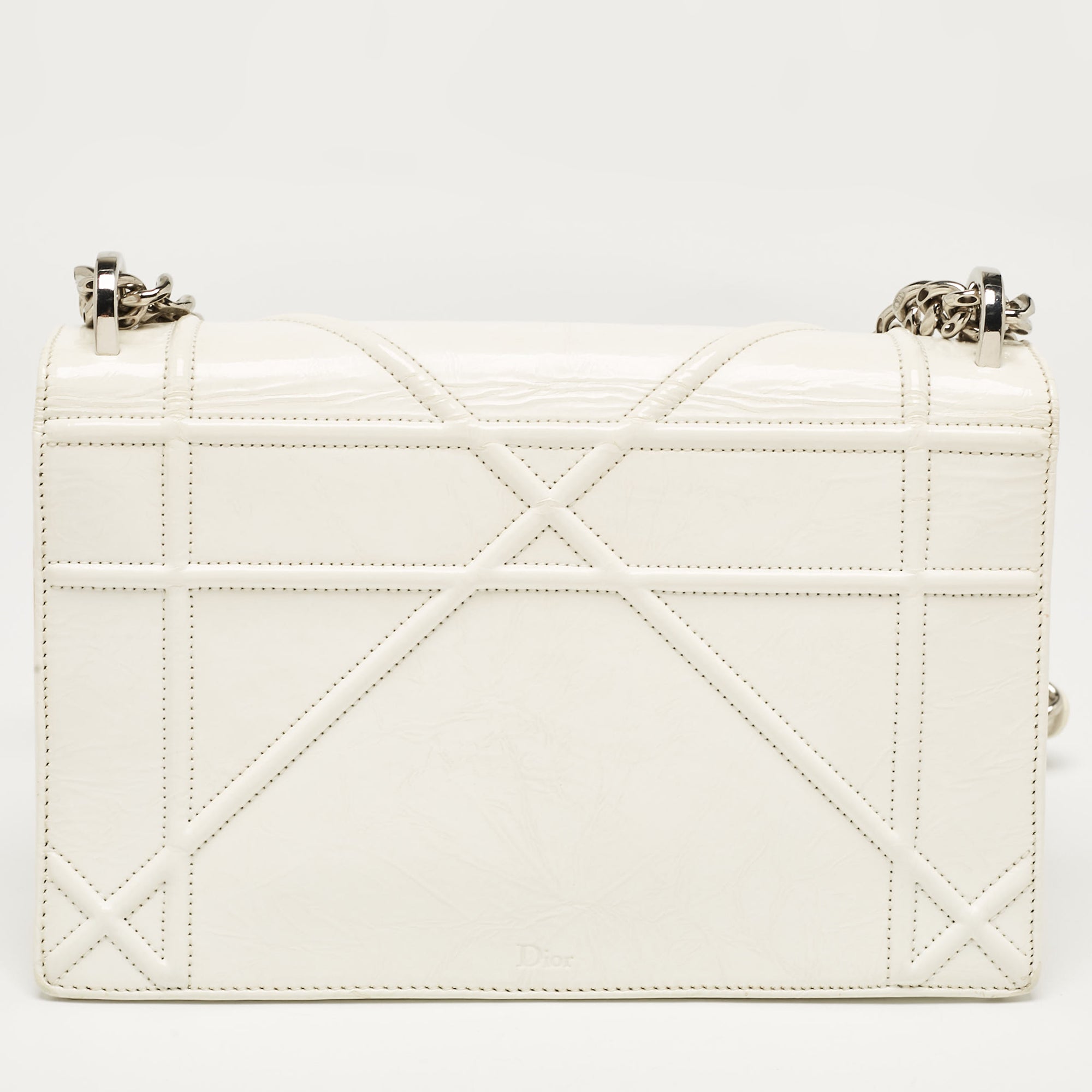Introduced in Spring/Summer 2015 runaway the Diorama embodies refined shape and celebrates femininity through its artistic design. The signature Cannage pattern and the silver tone accents bring out the appeal of this Dior bag. Made from patent leather it features a branded lock closure at the front and its lined interior makes for a luxurious abode for your party essentials.