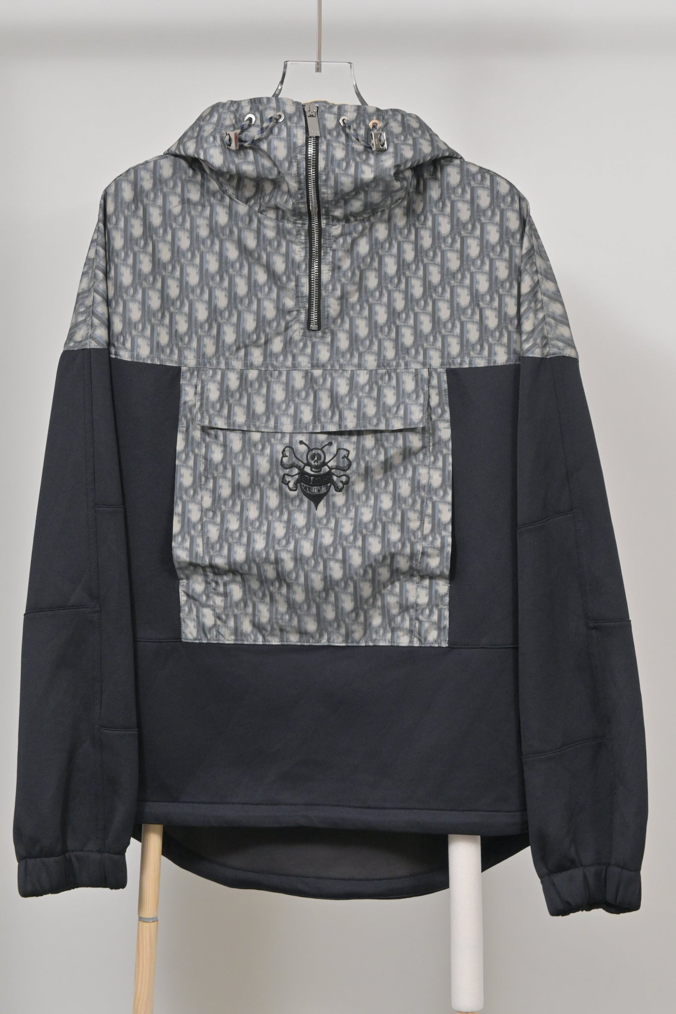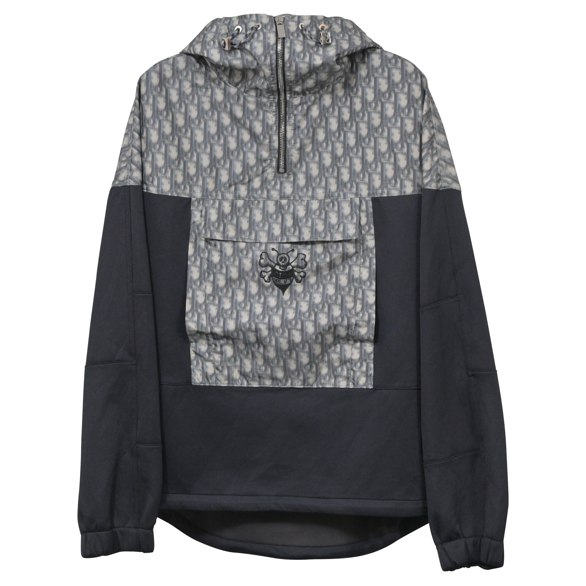 Dior x Shawn Stussy Blurred Oblique Anorak Hoodie in Blue Polyester