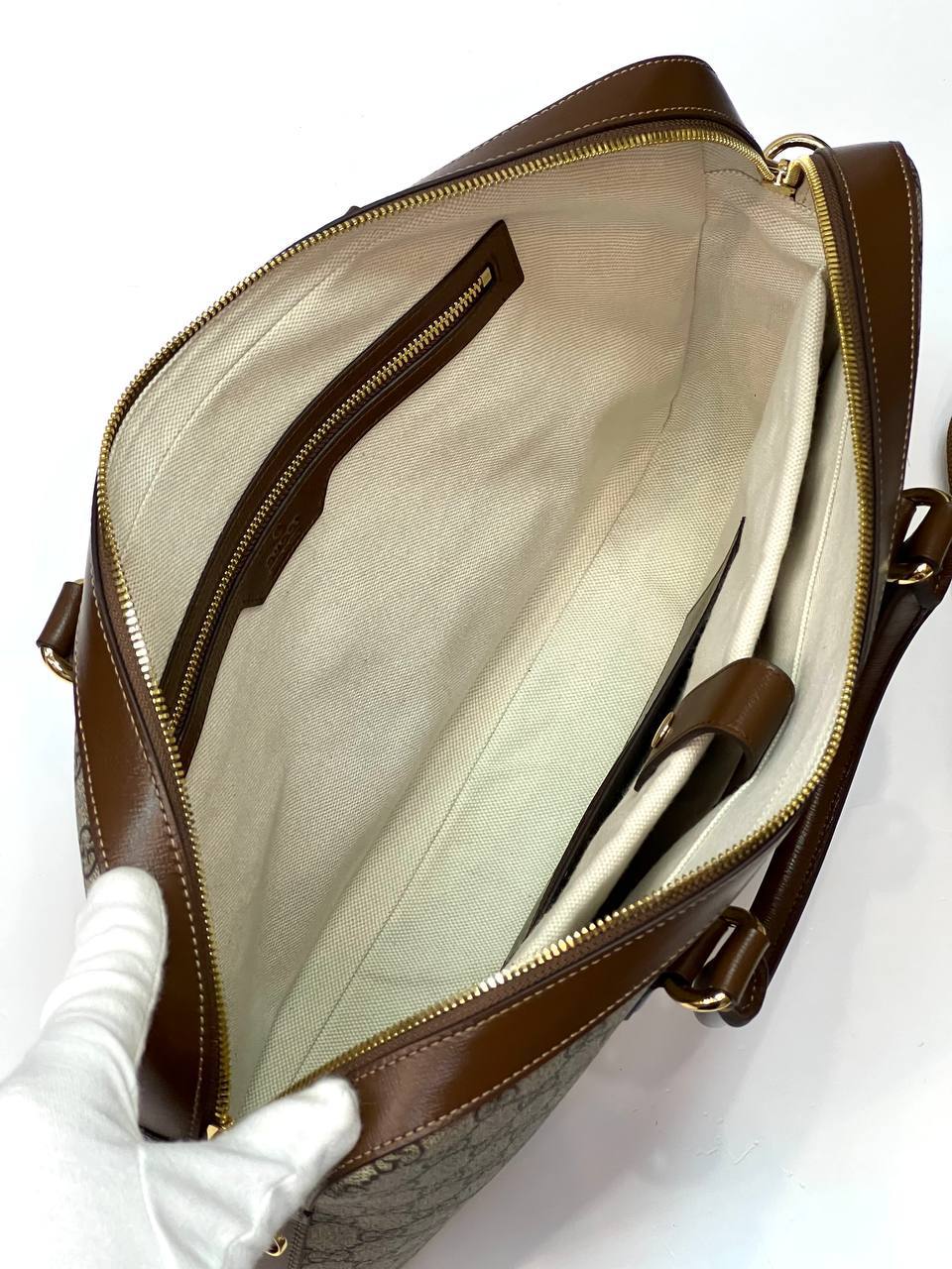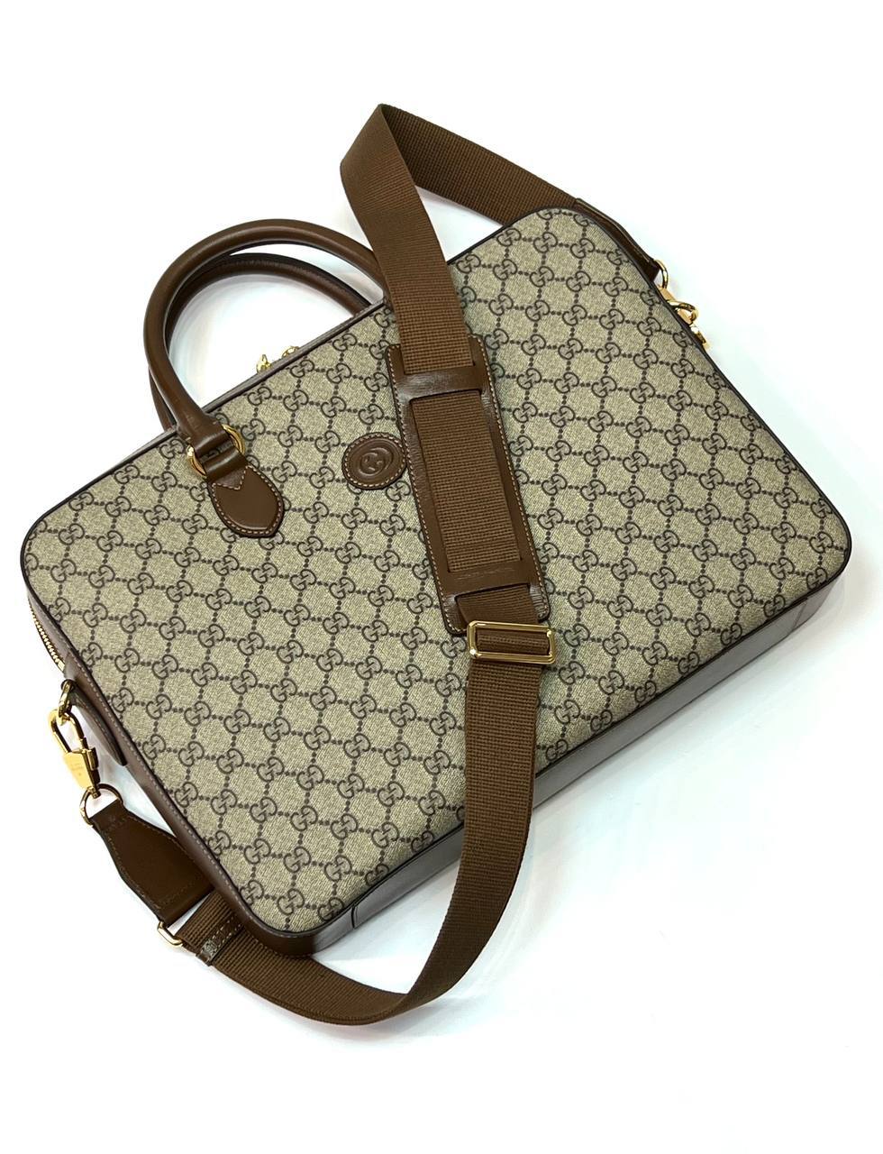 The Interlocking G has remained one of the most symbolic codes of the House since its introduction. The distinguishing emblem appears as a leather detail atop this business case. Completing the design's logo feel, the style is crafted from monogram canvas.