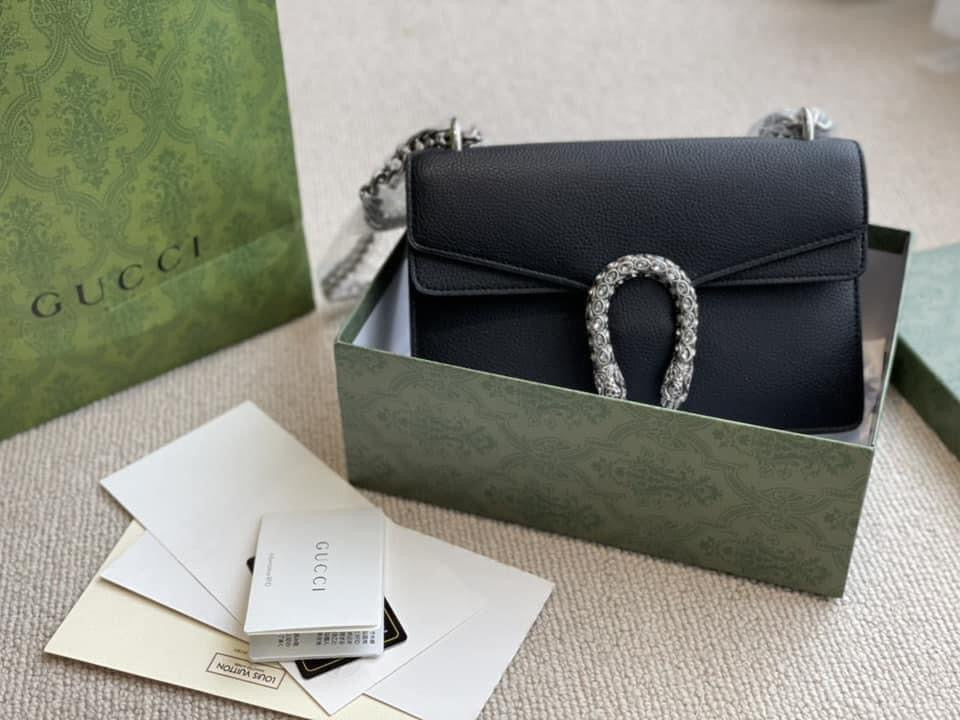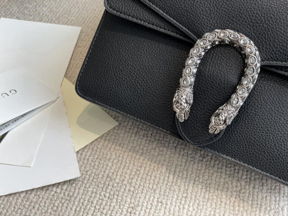 A message about leaving fashion’s old rules behind, the Epilogue collection conveys the idea that pieces should be timeless–not just in fashion for one season. Among the styles are Alessandro Michele’s most emblematic designs and motifs from the past 5 years like the Dionysus. One of the House's Beloved lines, the style is presented as a small shoulder bag in black, textured leather. Adding a colourful twist, electric blue enamel highlights the emblematic tiger head closure.