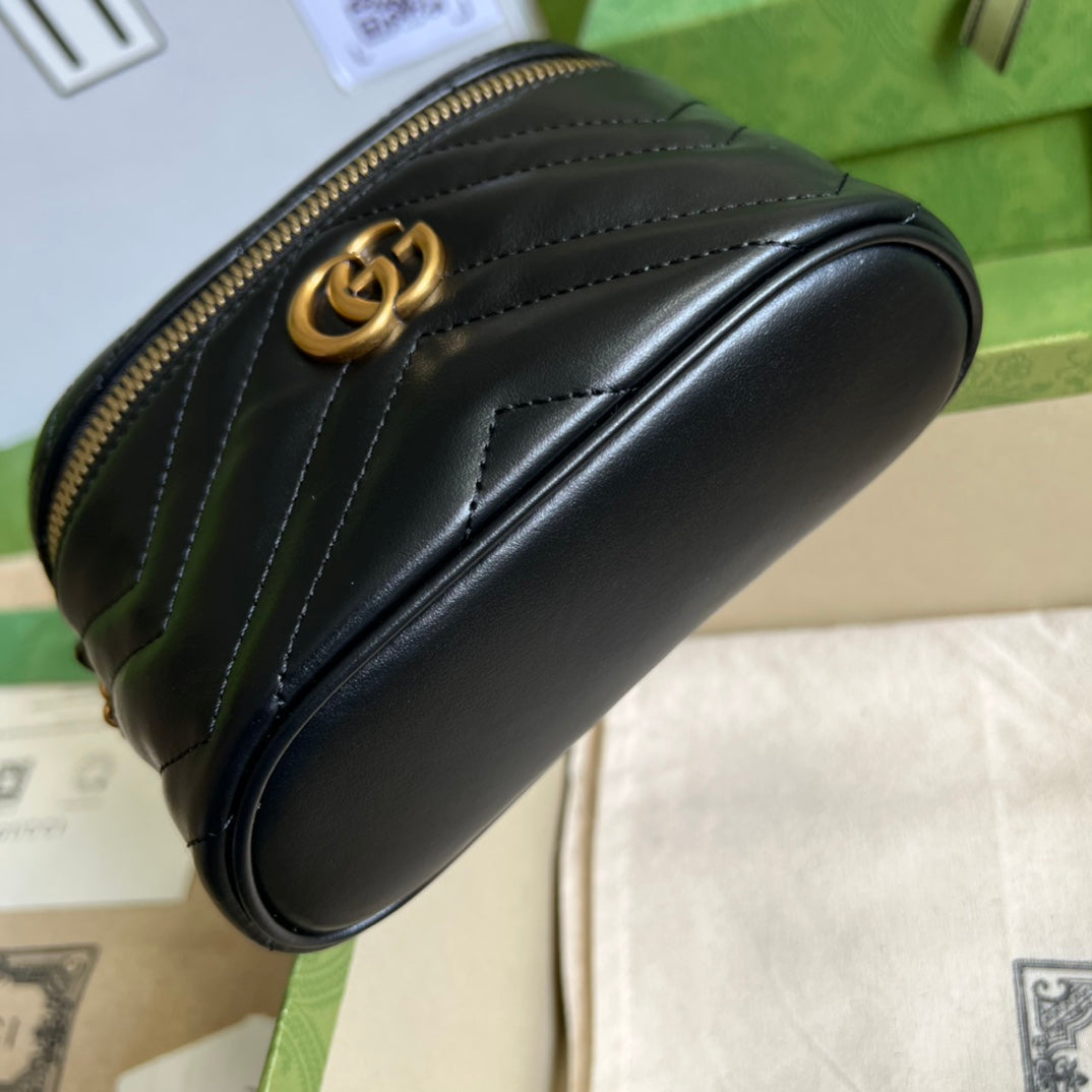 The Gucci Aria collection is an exploration of the House's most emblematic codes and symbols. A member of the Beloved family, the GG Marmont is synonymous with its matelassé leather and monogram hardware. The design appears here in the shape of a mini bag in black.
