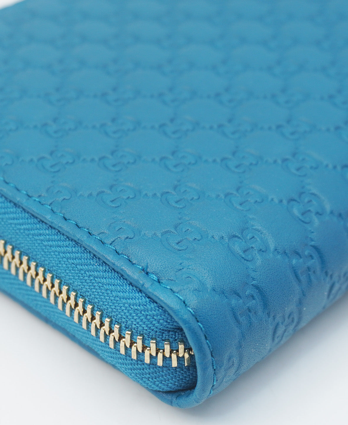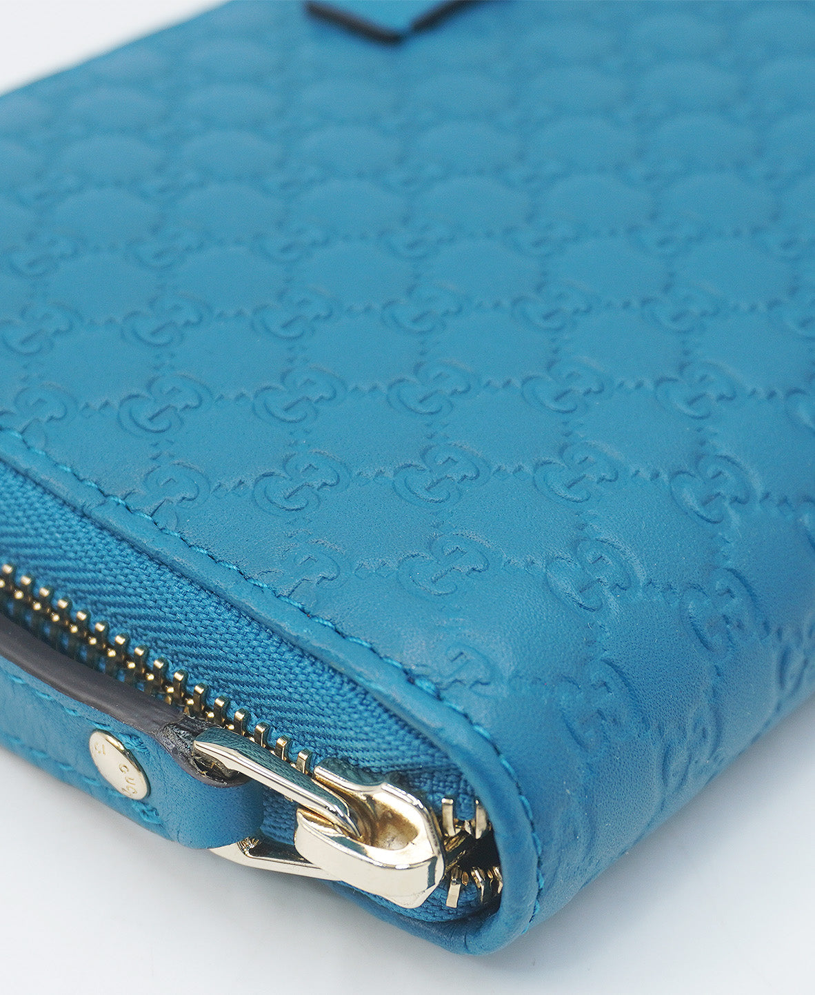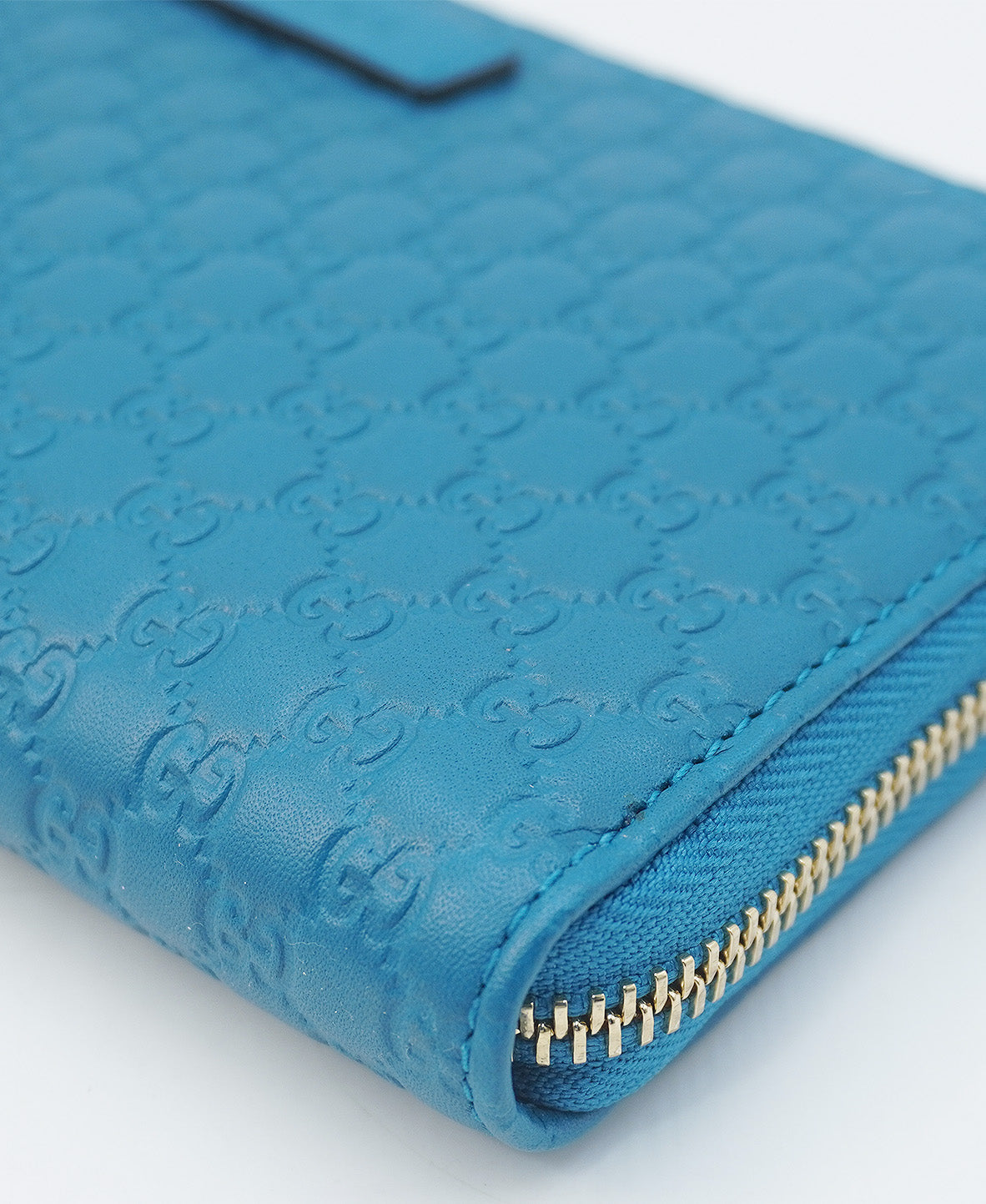 This chic and compact wallet is superbly crafted of Guccissima calfskin leather in blue. Zipper that opens to a blue interior with billfolds, credit card slots, and a zipper compartment. This is an excellent wallet for everyday necessities, with the timeless style of Gucci!