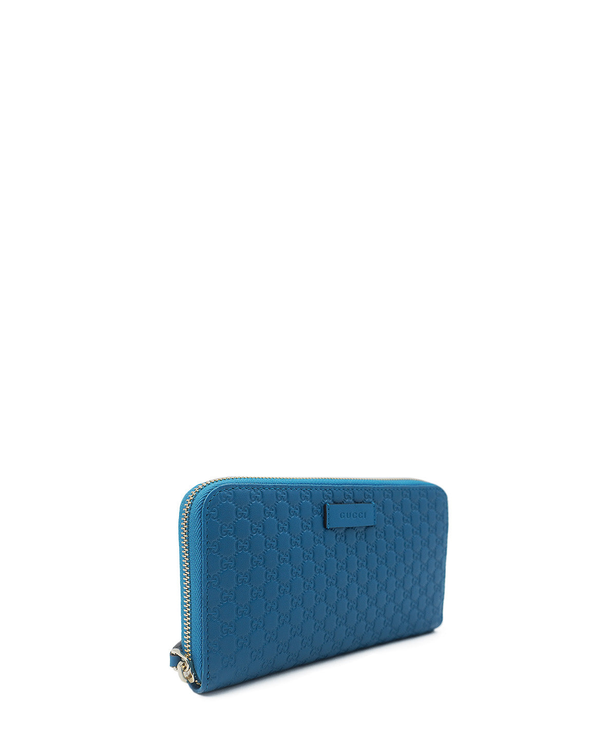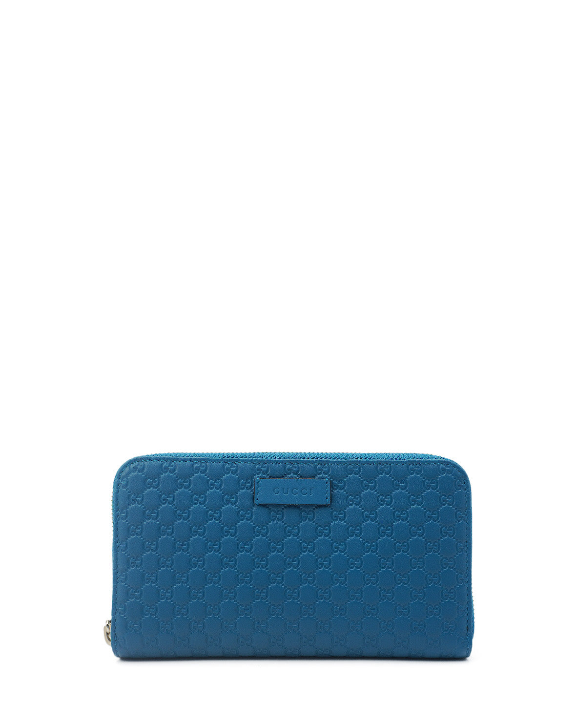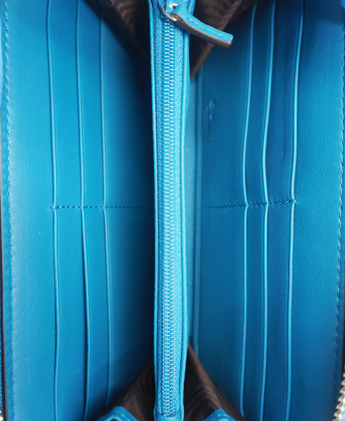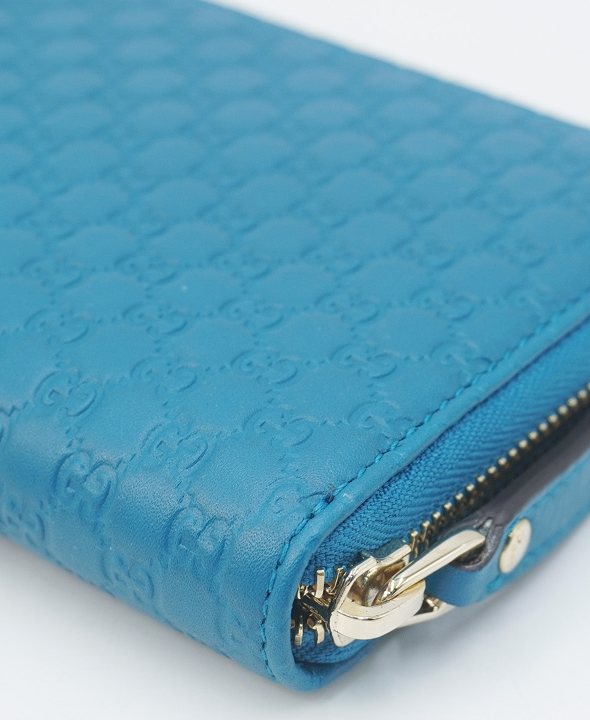 This chic and compact wallet is superbly crafted of Guccissima calfskin leather in blue. Zipper that opens to a blue interior with billfolds, credit card slots, and a zipper compartment. This is an excellent wallet for everyday necessities, with the timeless style of Gucci!