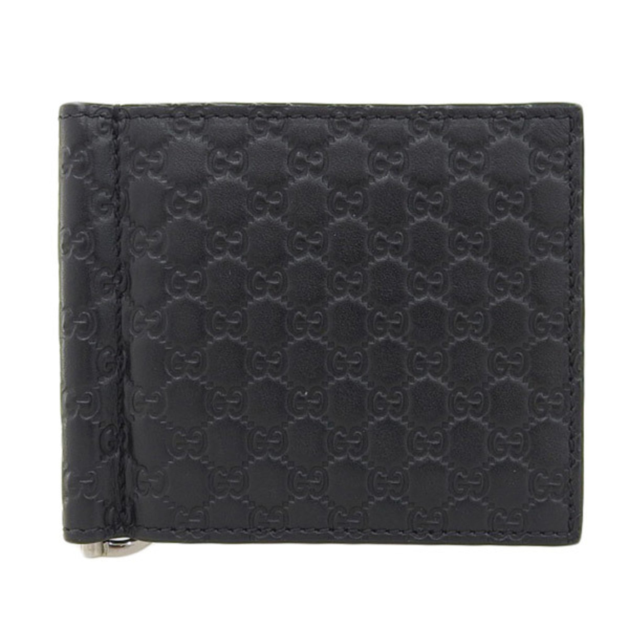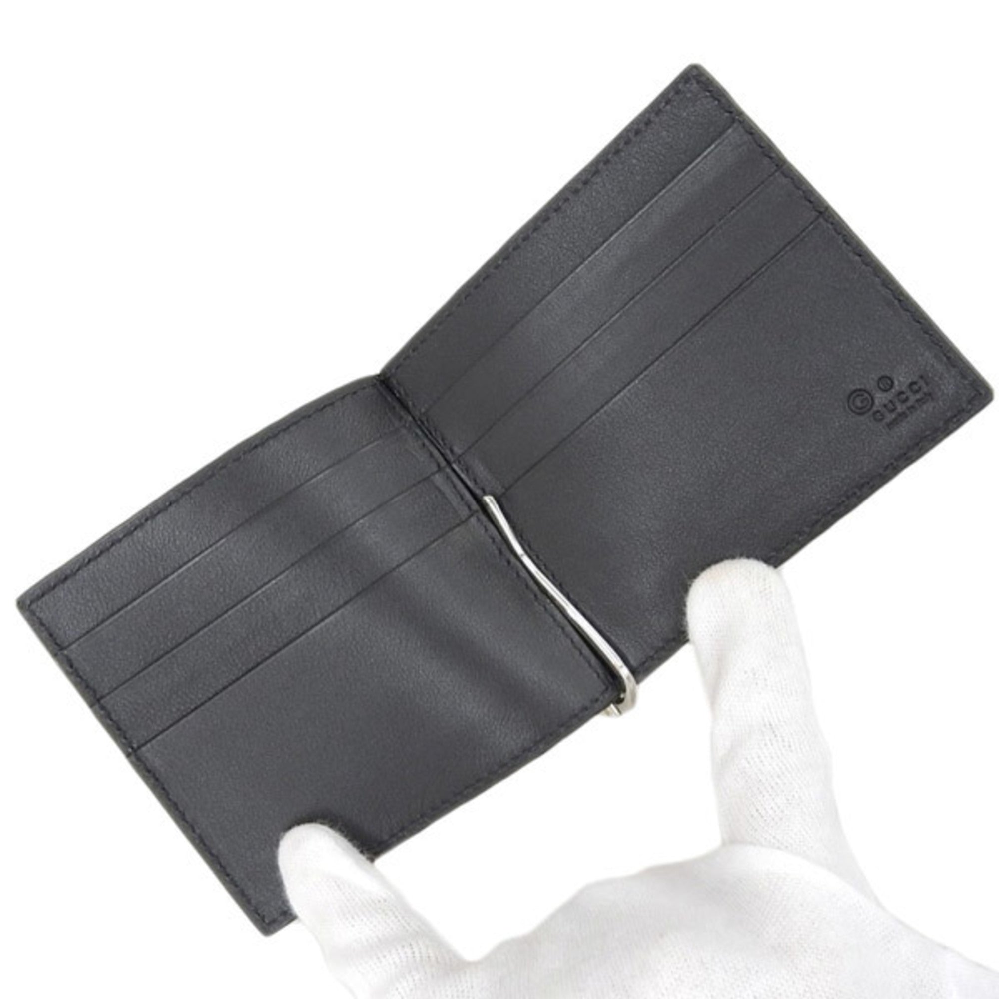 Gucci Micro Guccisima Leather Money Clip Bifold Wallet 544478 Black Men's