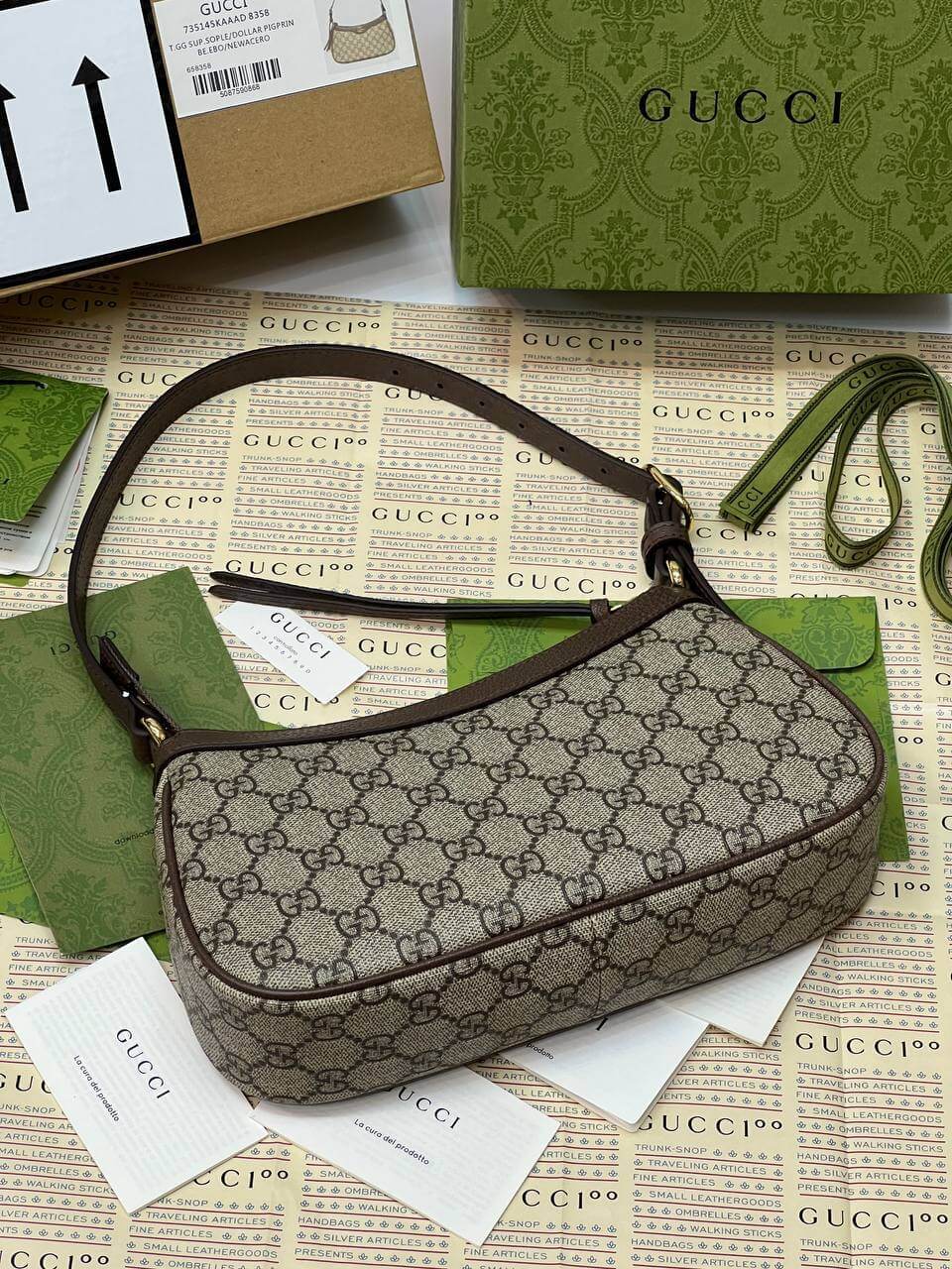 House collections continue the idea that pieces should be timeless and not just in fashion for one season. Guccio Gucci's everlasting monogram continues to enrich new designs with a logo feel. This Ophidia small handbag is presented in the historical GG Supreme canvas, complete with the Double G hardware.