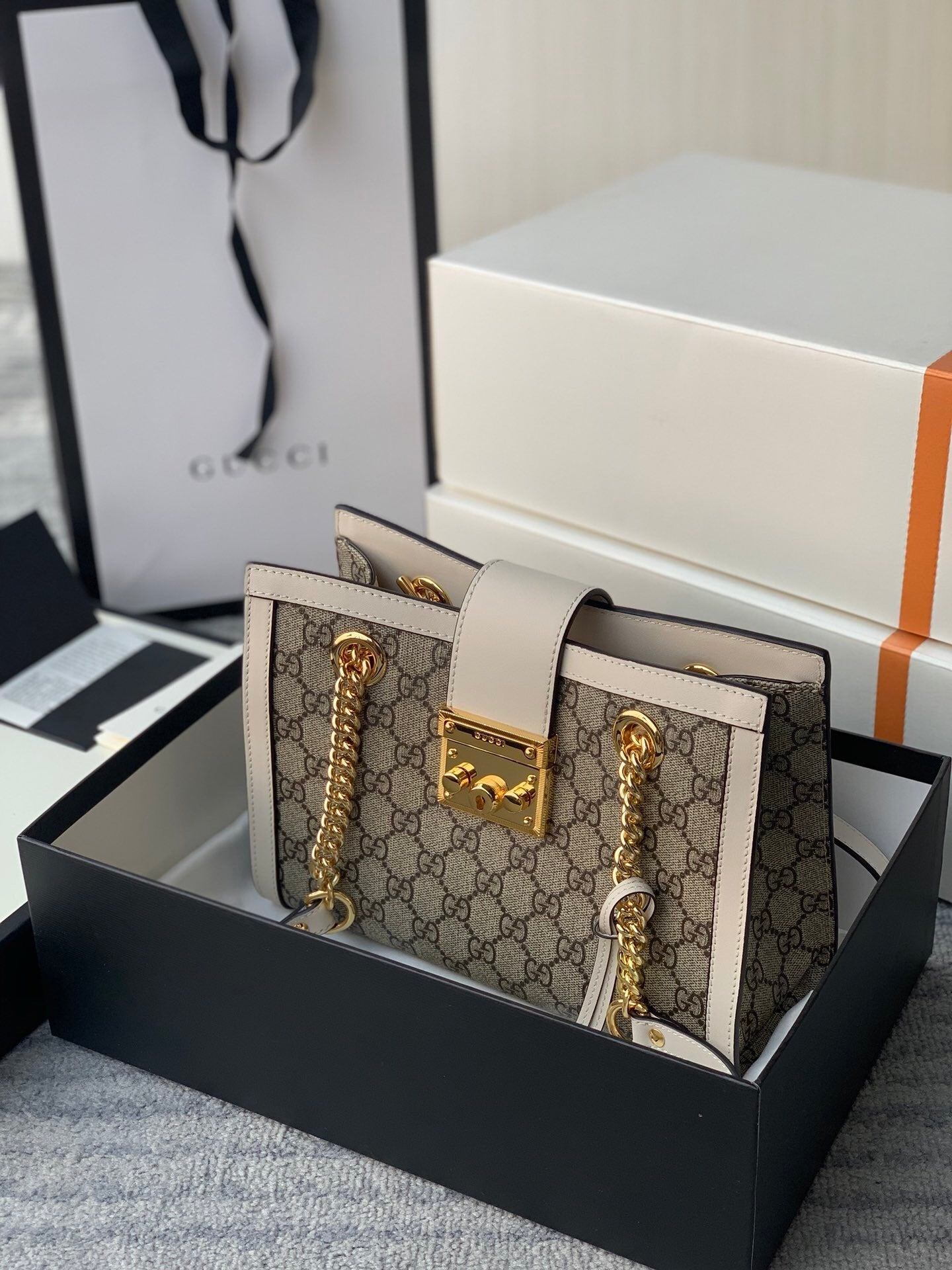 A structured shoulder bag in GG Supreme canvas with a strap that secures with a key lock closure pulled straight from the archives. The key is placed in a detachable leather key case.