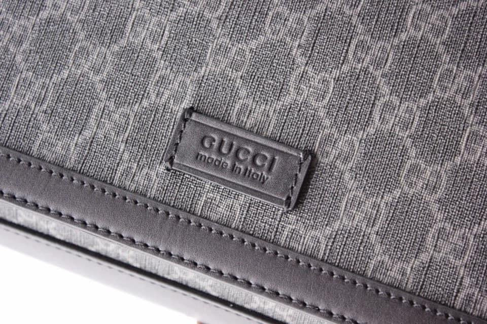 A diaper bag in black/grey GG Supreme canvas. First used in the 1970s, the GG logo was an evolution of the original Gucci rhombi design from the 1930s, and from then it's been an established symbol of Gucci's heritage. For Cruise 2018, the GG pattern has been brought back to the forefront in new combinations, paying homage to Gucci's roots. Complete with an adjustable Web shoulder strap and leather trims.