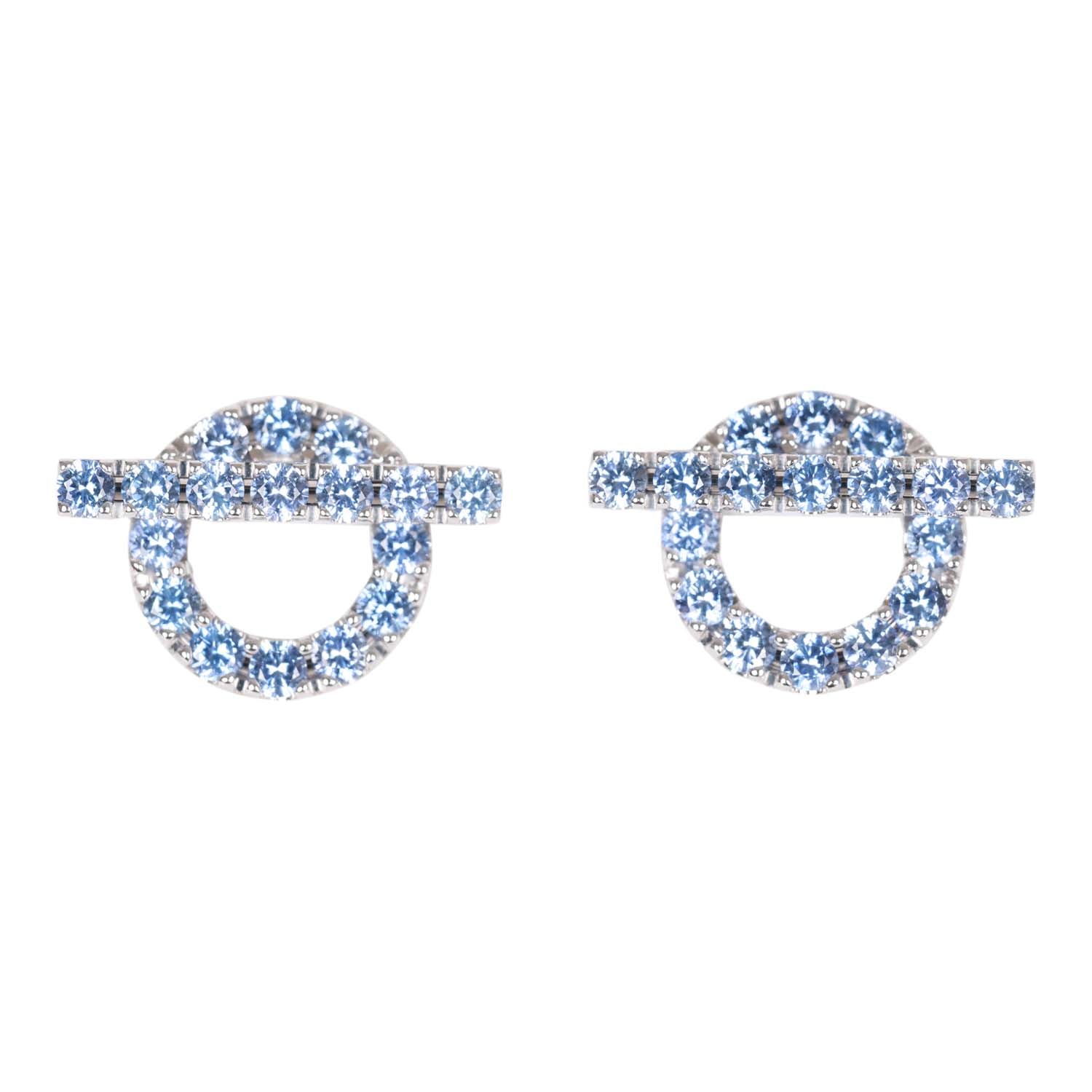 Hermes Finesse Earrings in Sapphire 18k White Gold with bar and ring motif pendant set and Sapphire gemstones.