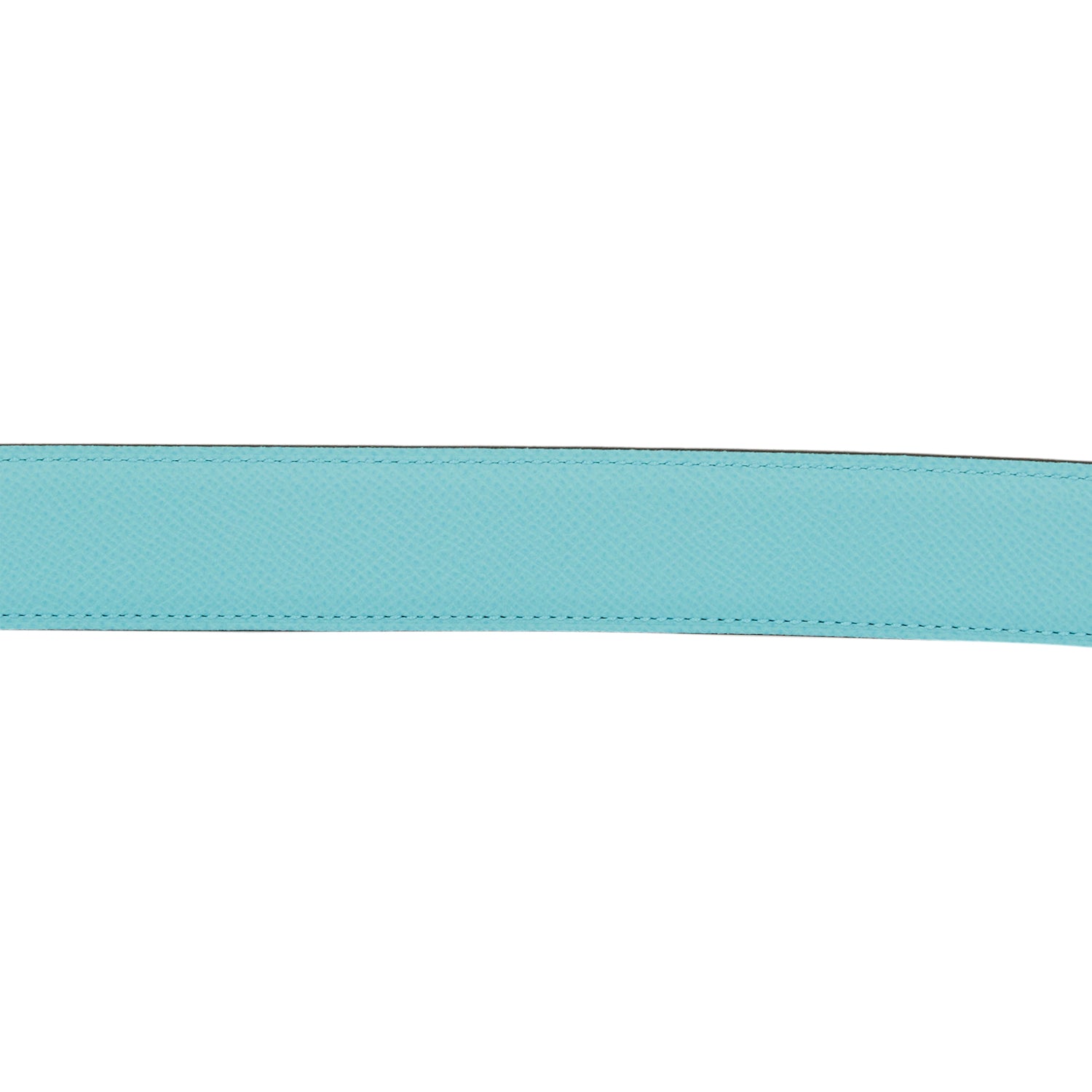 This Constance Belt kit has a wide belt strap in Bleu Indigo epsom leather reversing to Bleu Atoll epsom leather accompanied by removable H buckle of guilloche gold plated hardware.