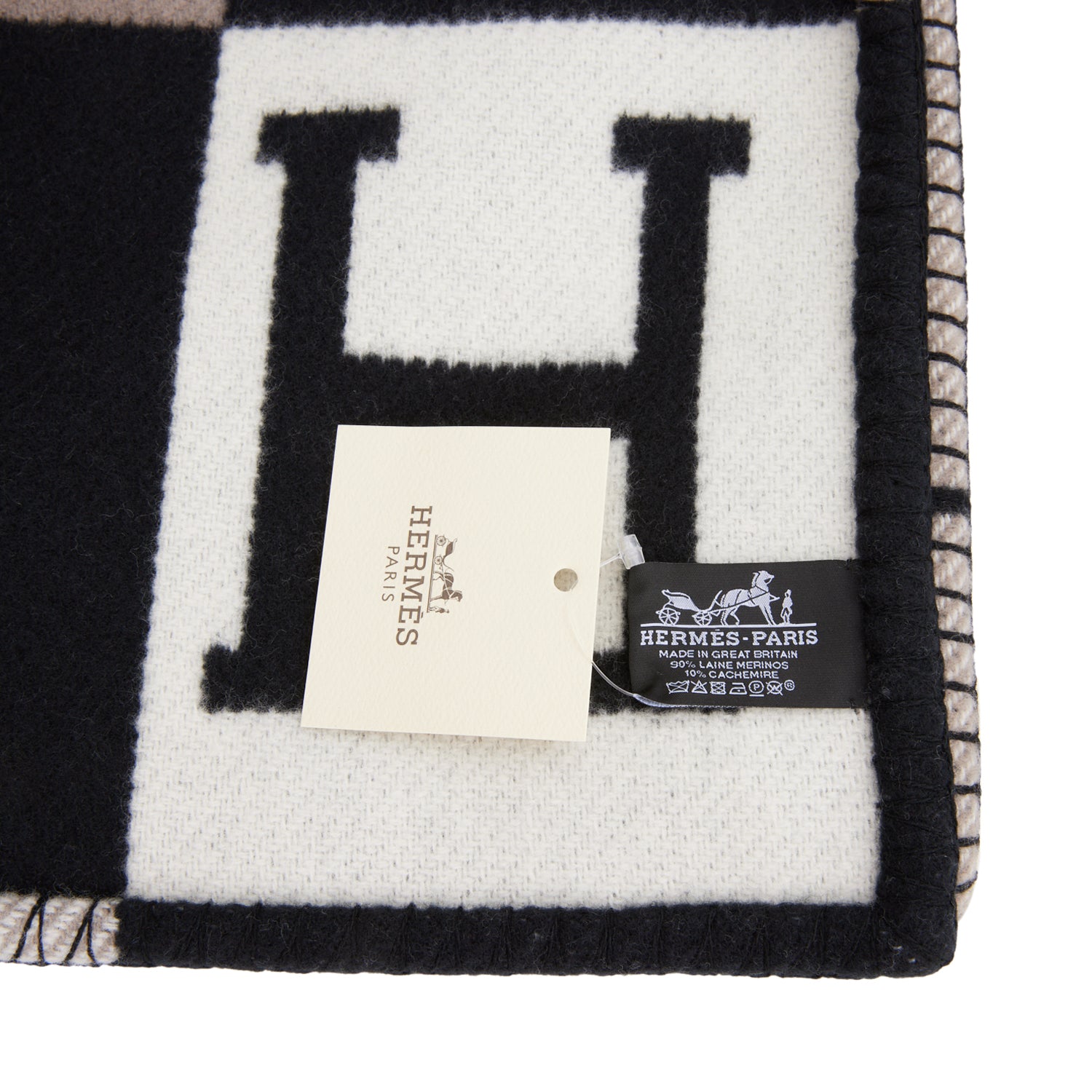 Hermes Avalon II Signature H blanket in gris and black made of 90% merino wool and 10% cashmere.