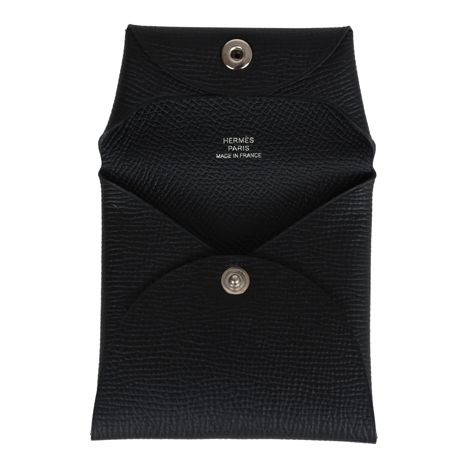 This Hermes Bastia Change Purse is in Black epsom leather with palladium hardware, featuring a palladium snap closure.