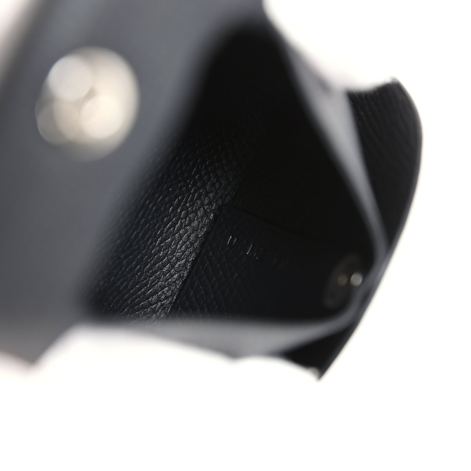 The interior is lined in Black epsom leather with one slip pocket for change.
