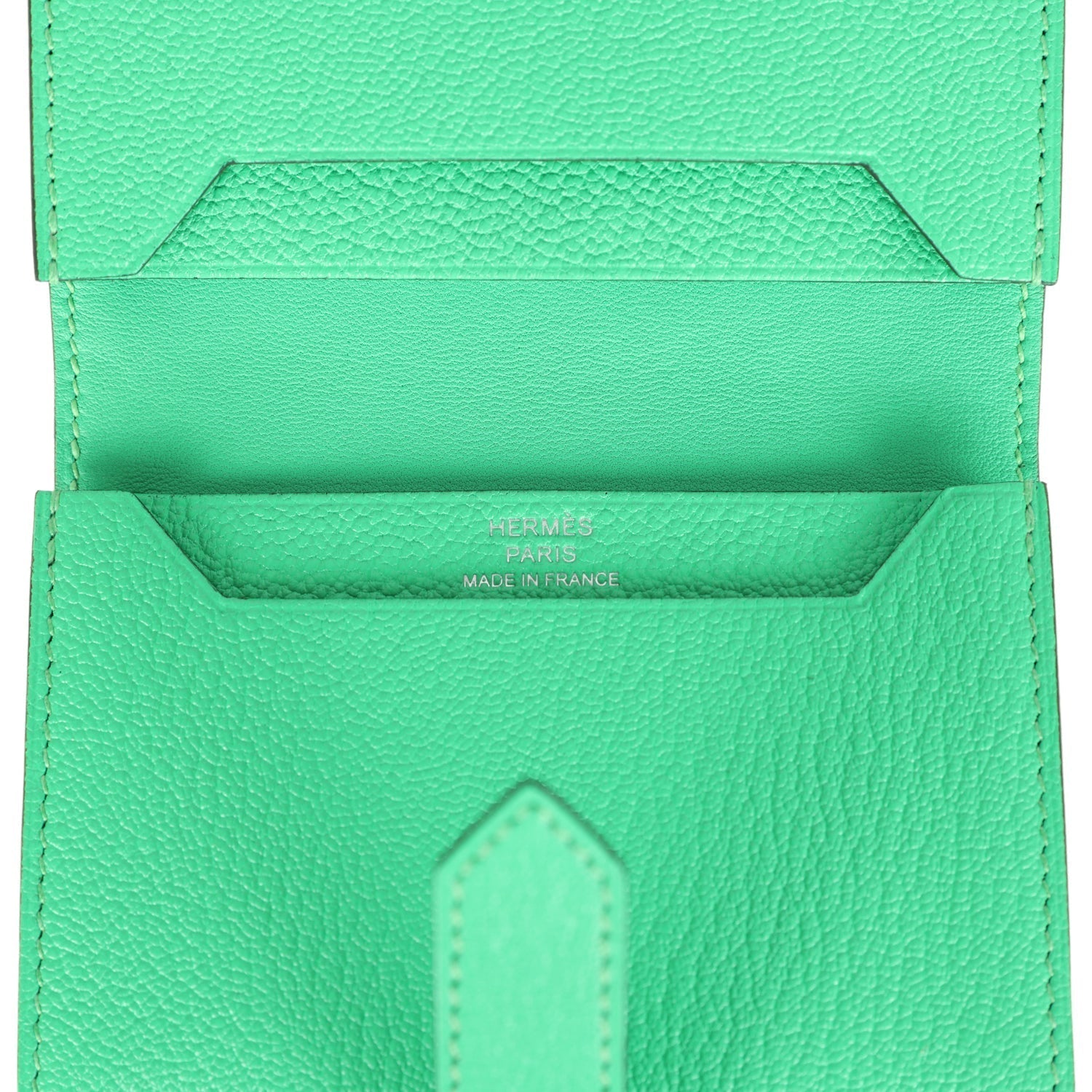 This Bearn Card Holder is in Vert Comics chevre mysore leather with palladium hardware, tonal stitching, and a loop closure that tucks into a palladium H.