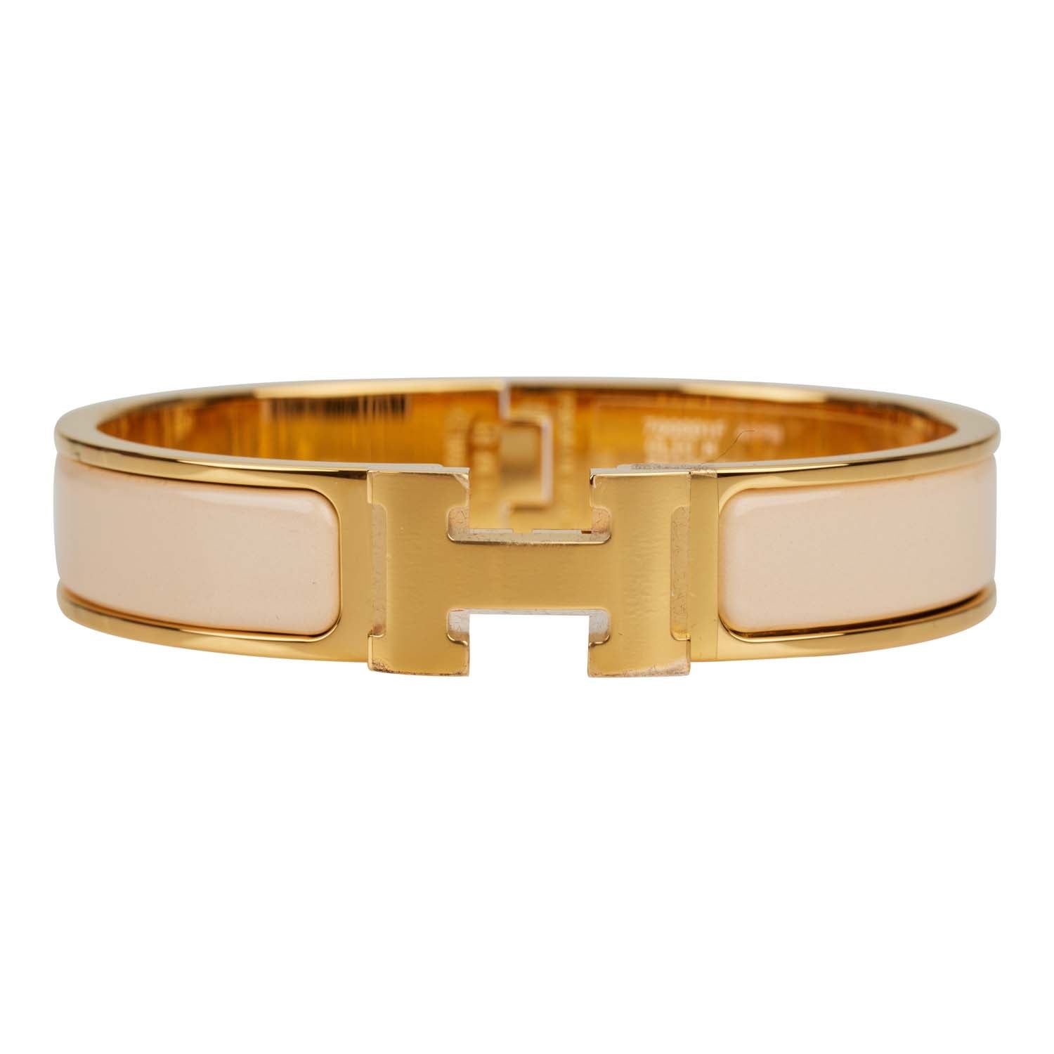 Hermes Beige Nacre Clic Clac H Narrow Enamel Bracelet PM GHW