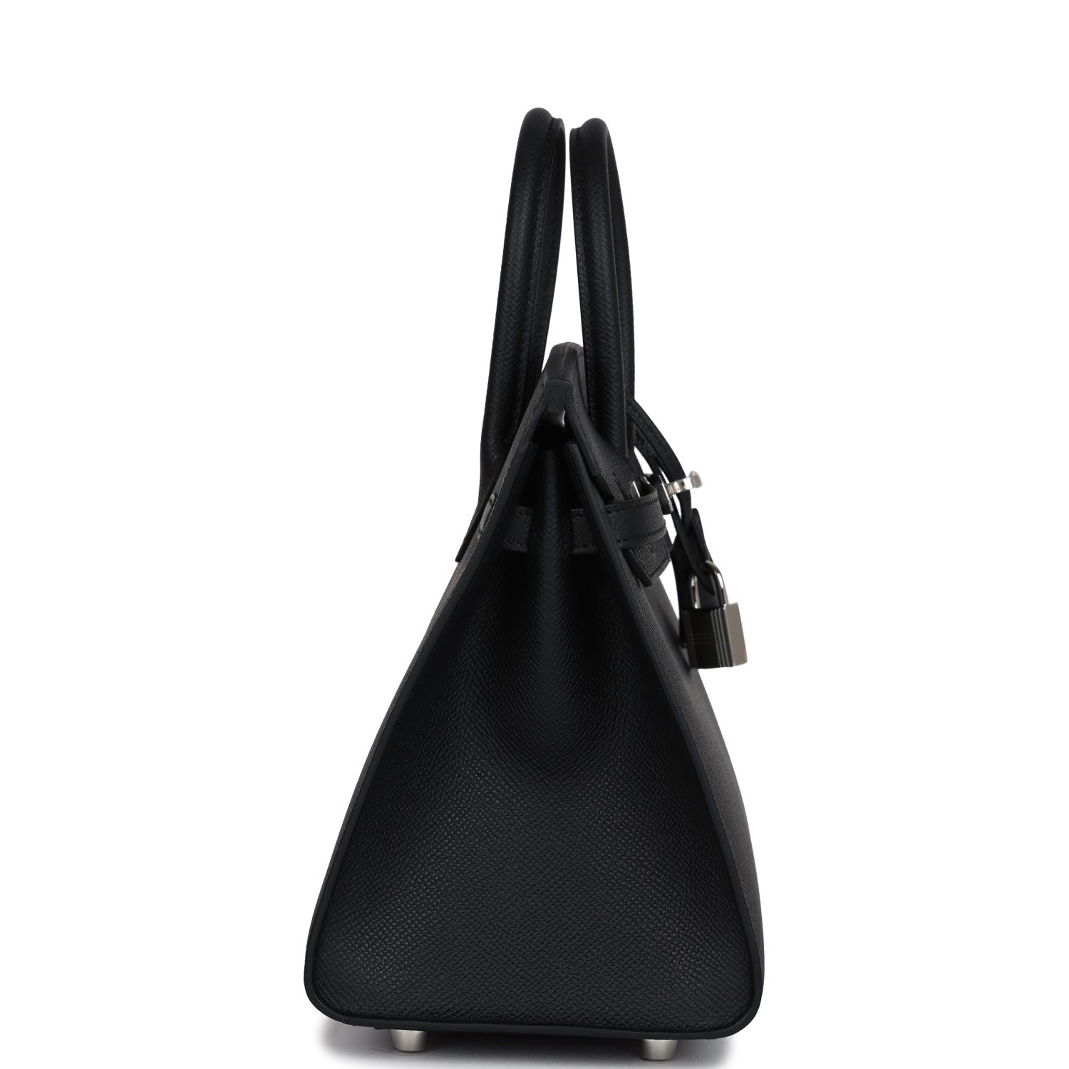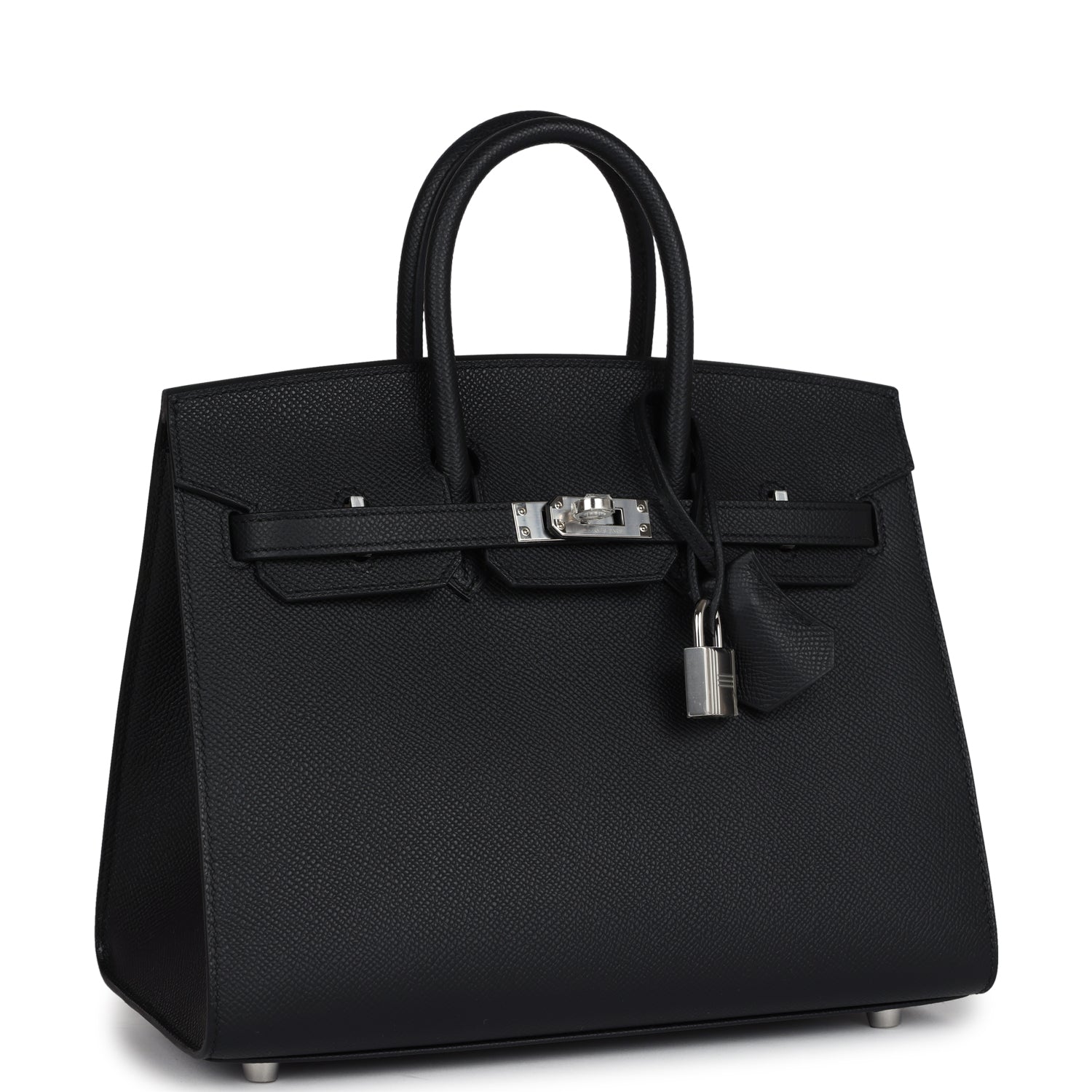 This Sellier Birkin is in Black epsom leather with palladium hardware and has tonal stitching, front flap, two straps with center toggle closure, clochette with lock and two keys, and double rolled handles.