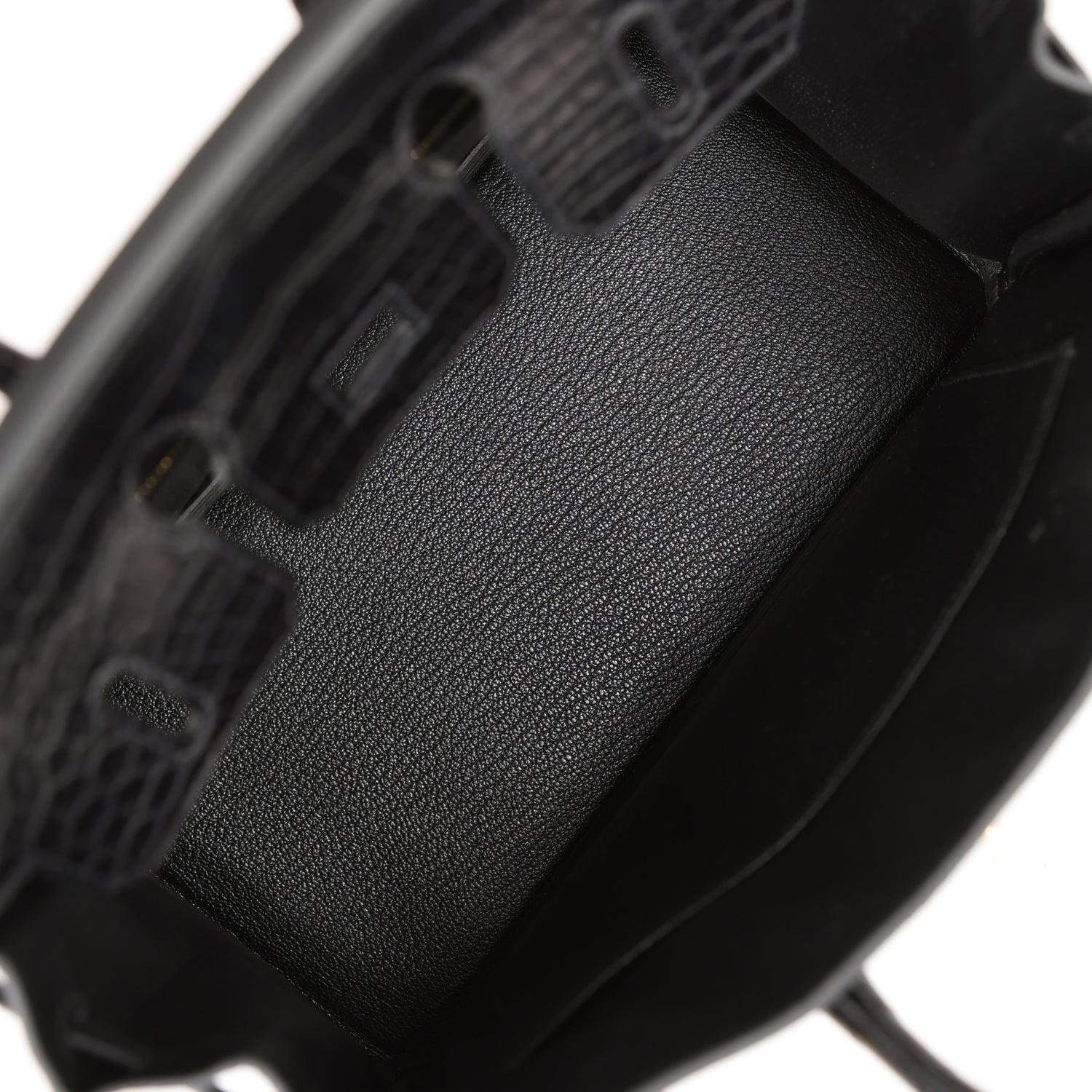The interior is lined with black chevre and has one zip pocket with an Hermes engraved zipper pull and an open pocket on the opposite side.