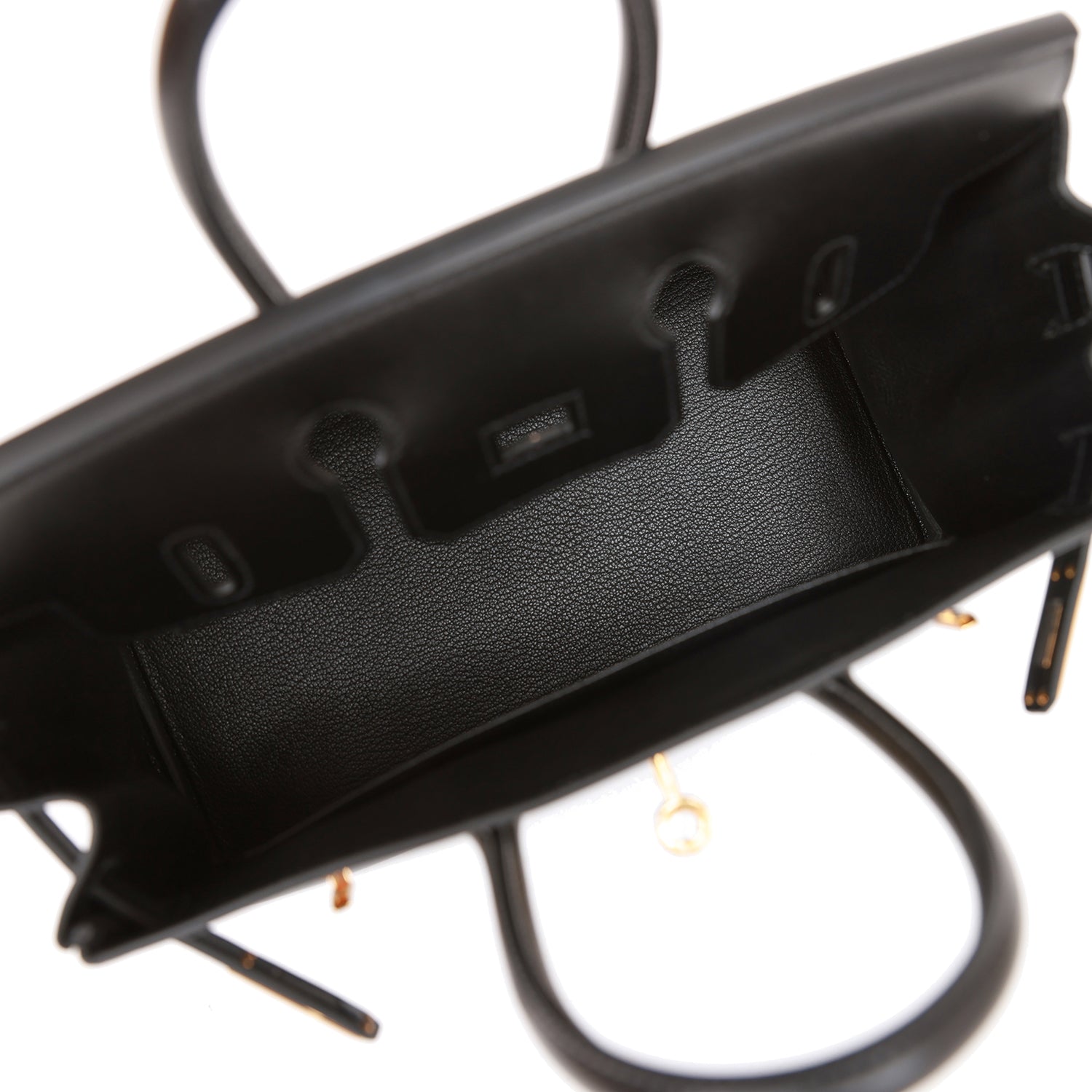 The interior is lined with black chevre and has a zip pocket with an Hermes engraved zipper pull and an open pocket on the opposite side.