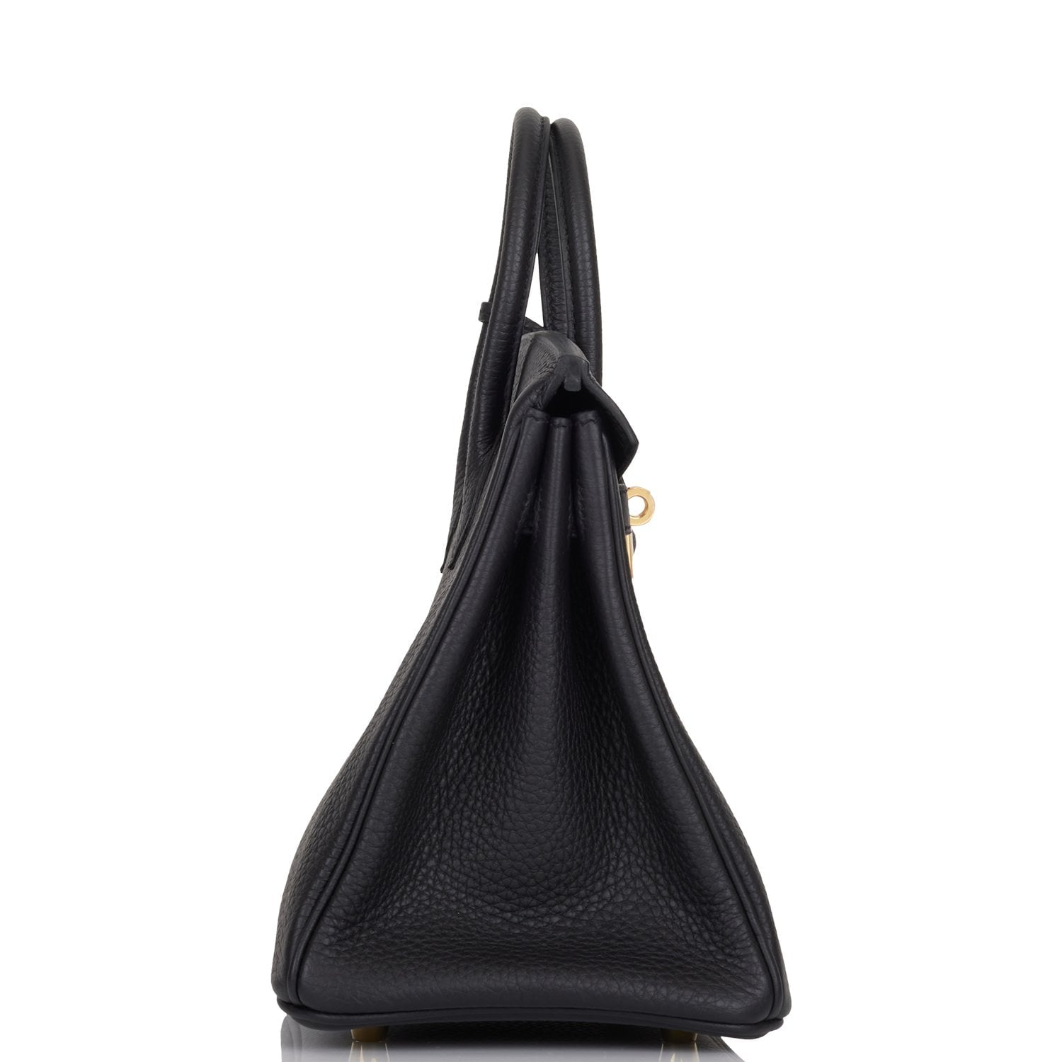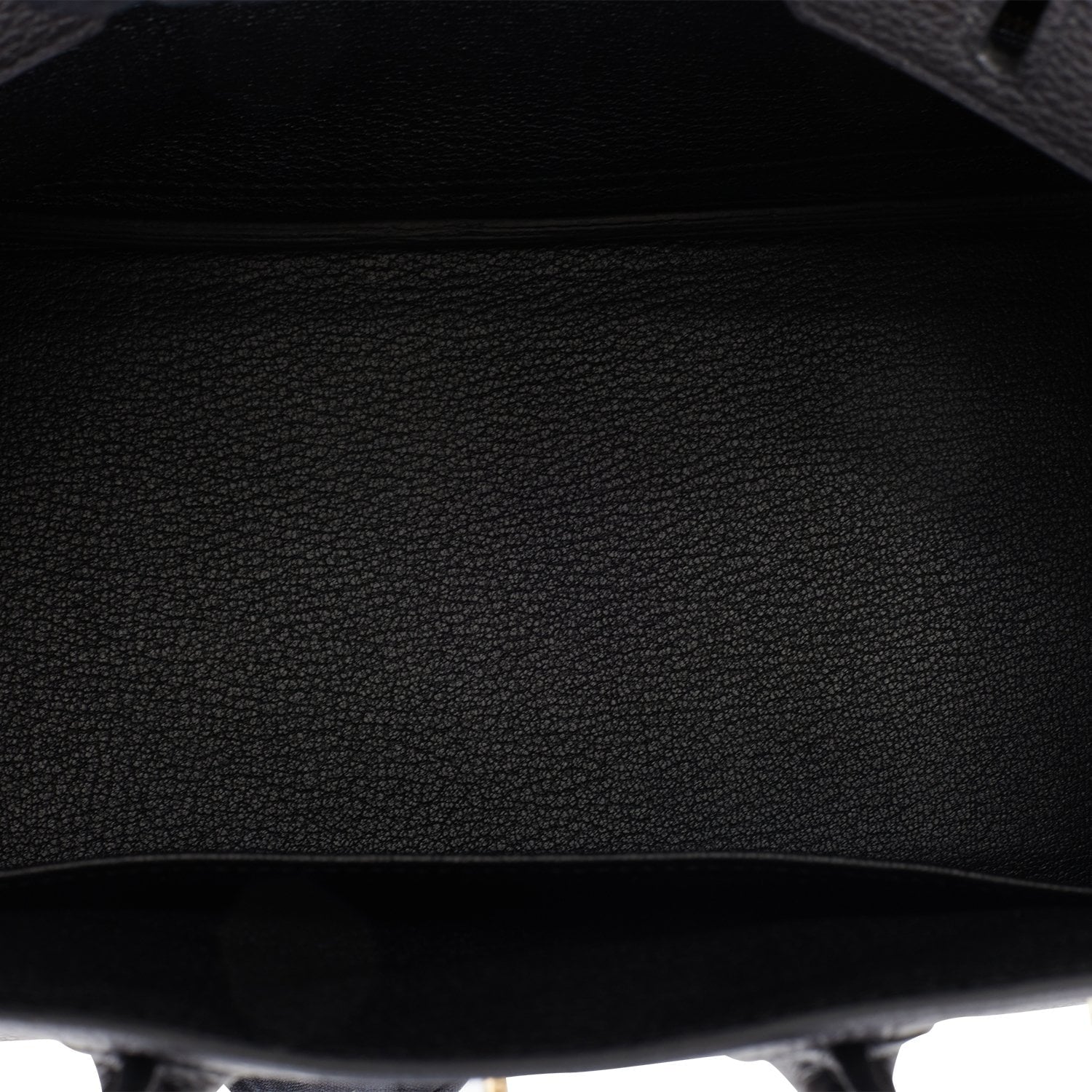 This Birkin is in Black togo leather with gold hardware and has tonal stitching, front flap, two straps with center toggle closure, clochette with lock and two keys, and double rolled handles.