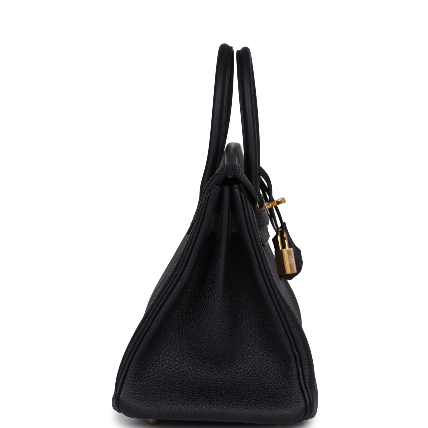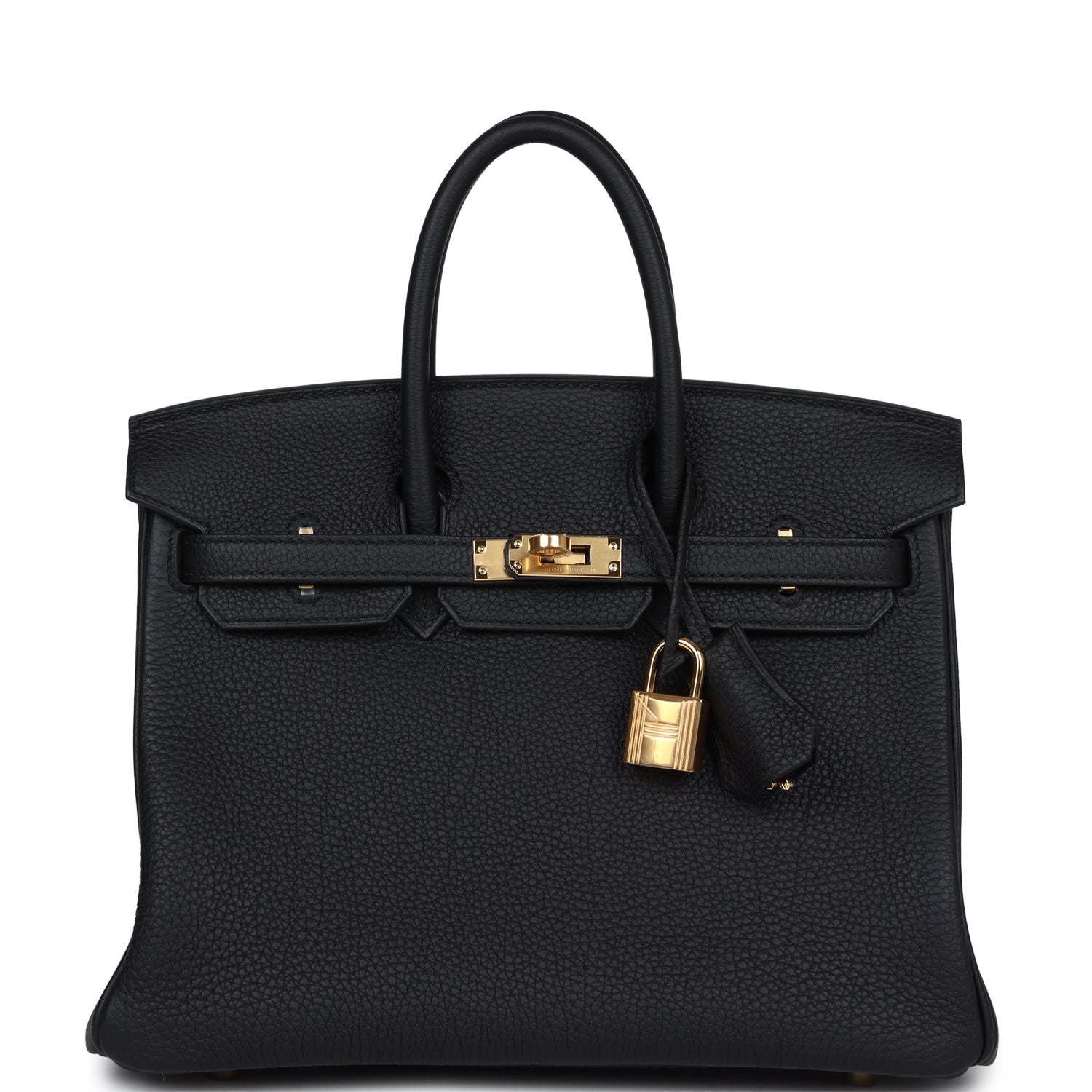 This Birkin is in Black togo leather with gold hardware and has tonal stitching, front flap, two straps with center toggle closure, clochette with lock and two keys, and double rolled handles.